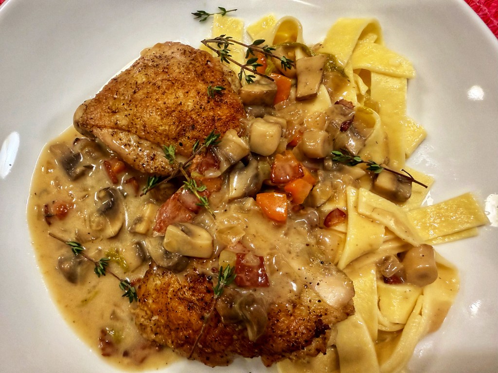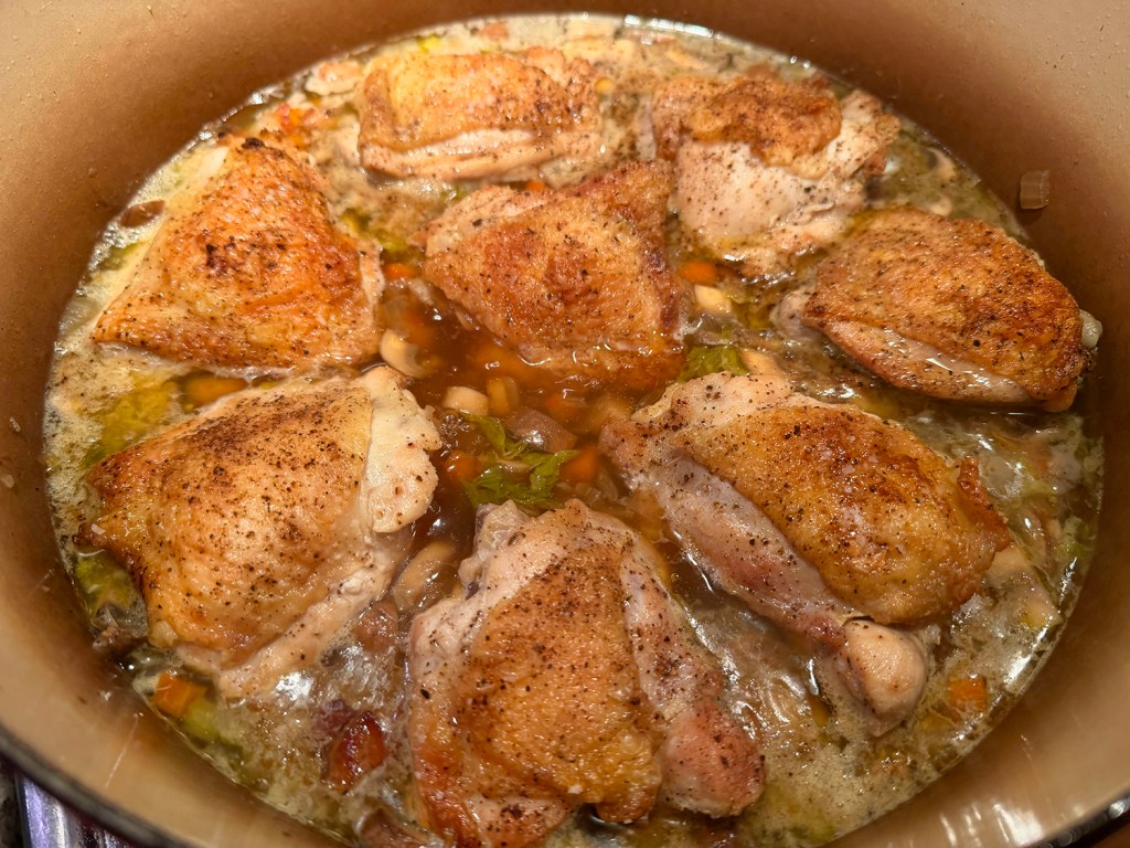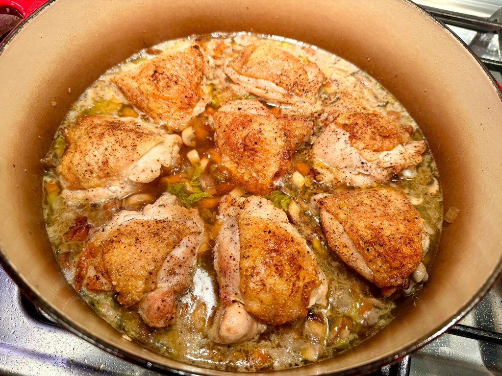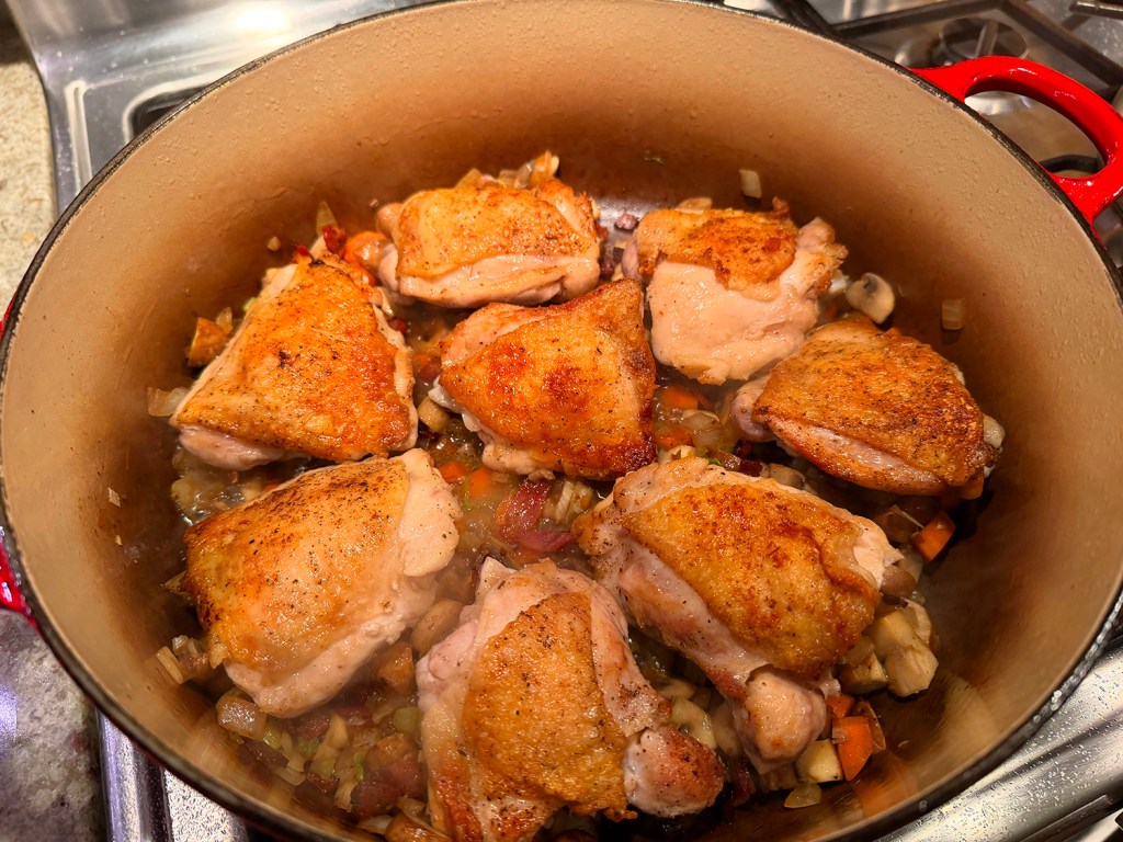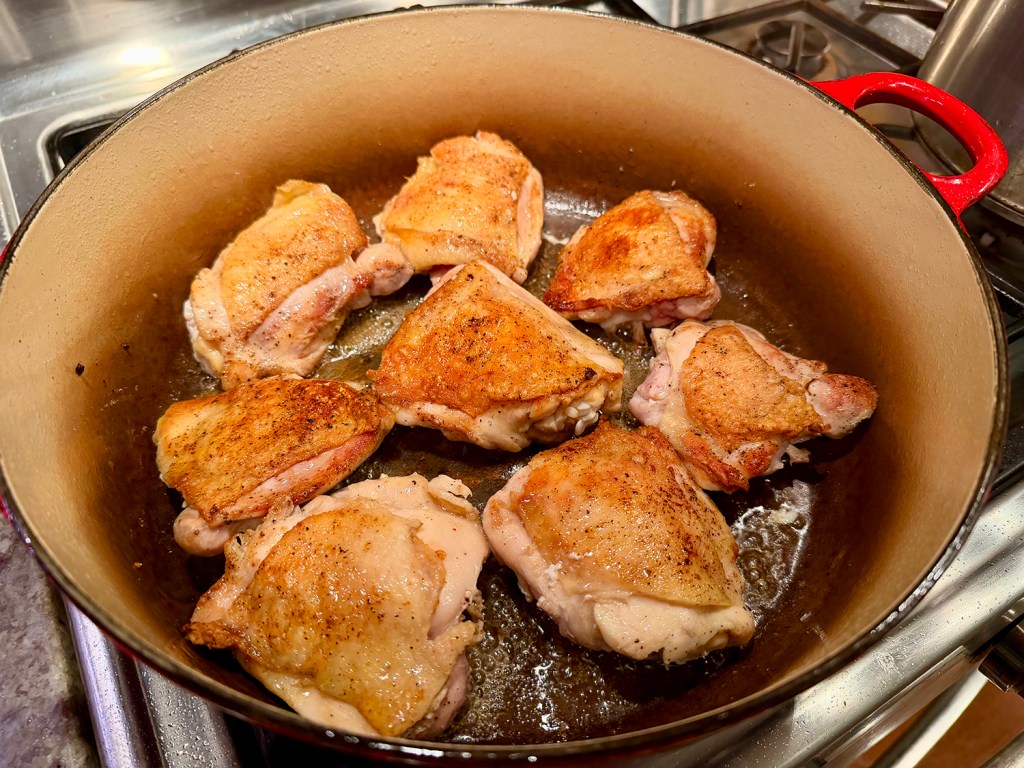 I digress… Lamb stew has that rich heartiness with deep and well-developed flavors. Here we provide three options. A quick cook in a pressure cooker; a long-slow cook in a crockpot; or as we did it, in a braising pot in the oven. Times will vary depending upon your chosen cooking method.