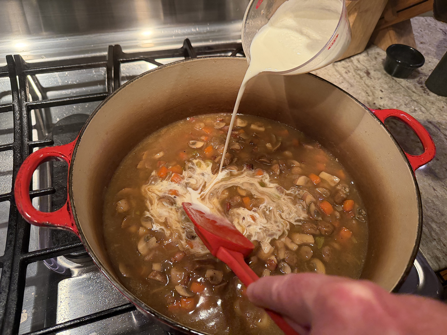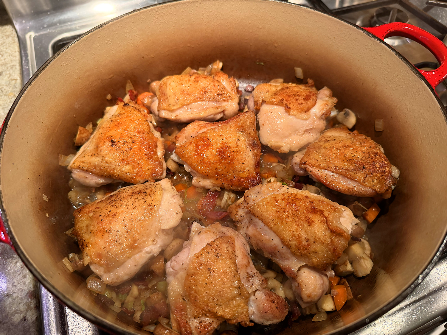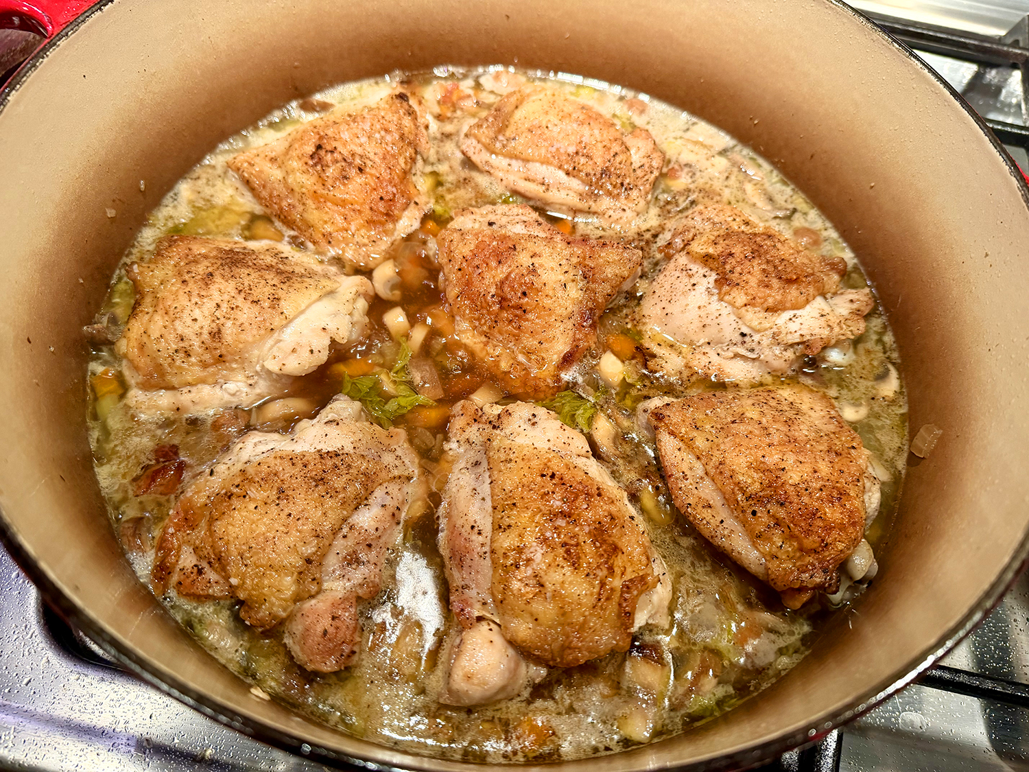 - Cover the pot and place in the pre-heated oven for 2 hours (check partway through to add water or broth if needed—we needed to add an additional cup of liquid).
