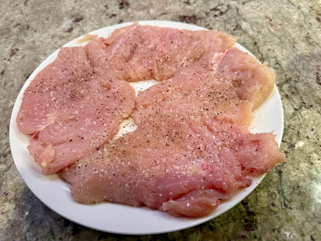 - 4 small thin-sliced skinless, boneless chicken breasts (about 1½ lb. total)