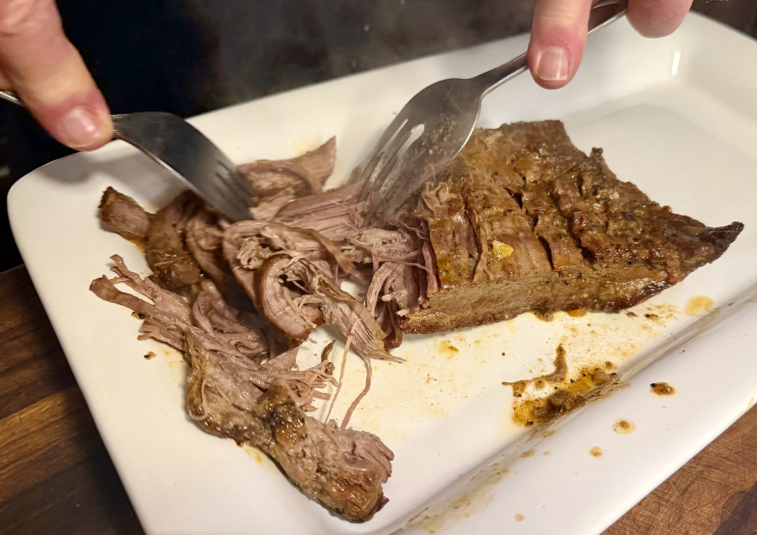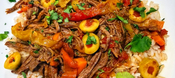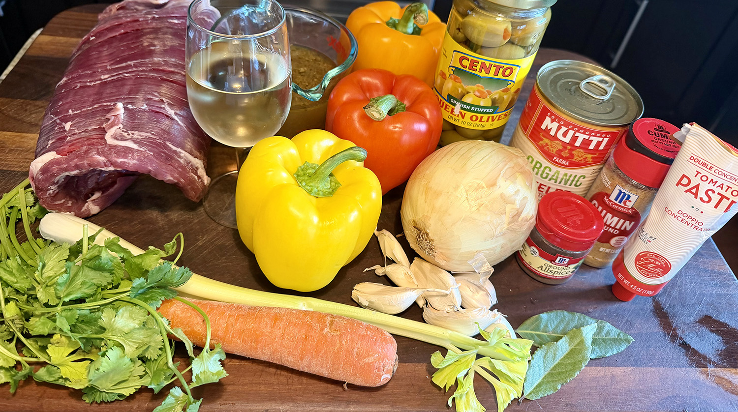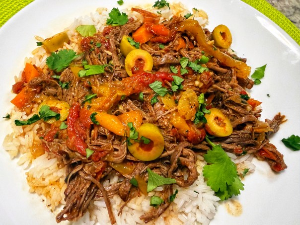 NOTE: Despite being a lean cut not generally suited to long cooking, the classic flank steak works well in ropa vieja because of how nicely it shreds. You can substitute brisket or skirt steak if desired.