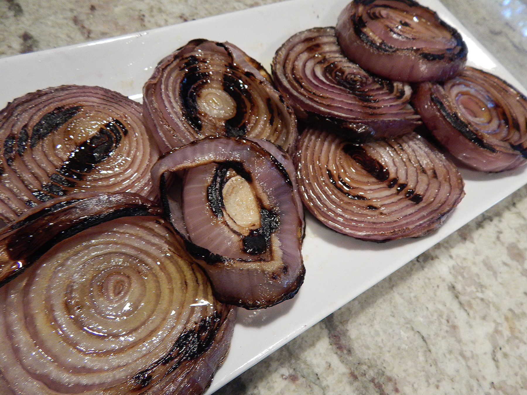 1 or 2 large Bermuda onions, thickly sliced and brushed with olive oil (optional)