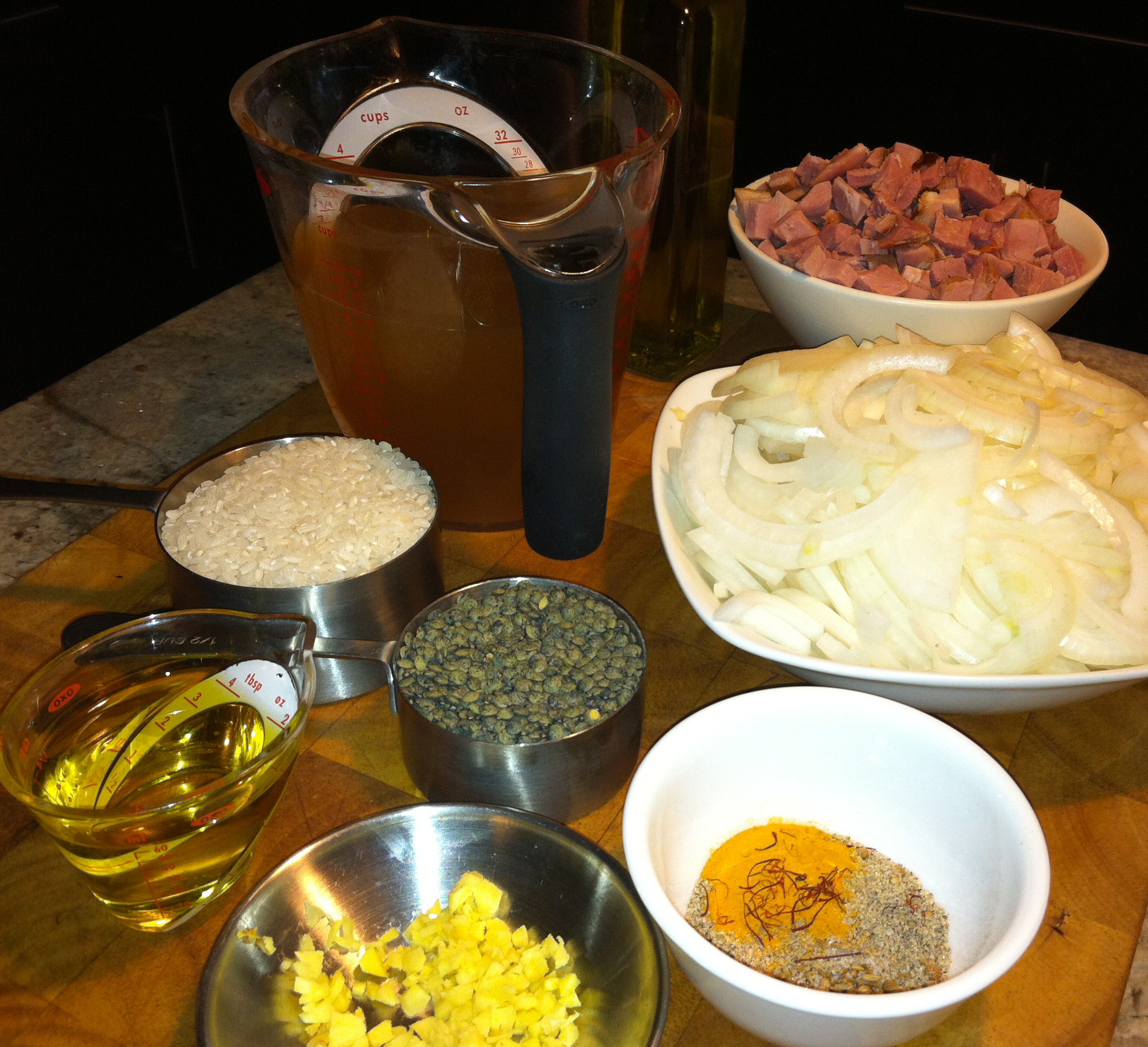 As promised in my Roasted or Cider-Braised Ham blog, here is the recipe for one of the leftover meals from an article in the April-May issue of Fine Cooking. We had enough leftover ham from the main menu to make two of the “Lucky Leftover” meals and a ham bone for soup. This Rice and Lentils with Ham recipe is definitely a “keeper” and easy to make for a weekday dinner.