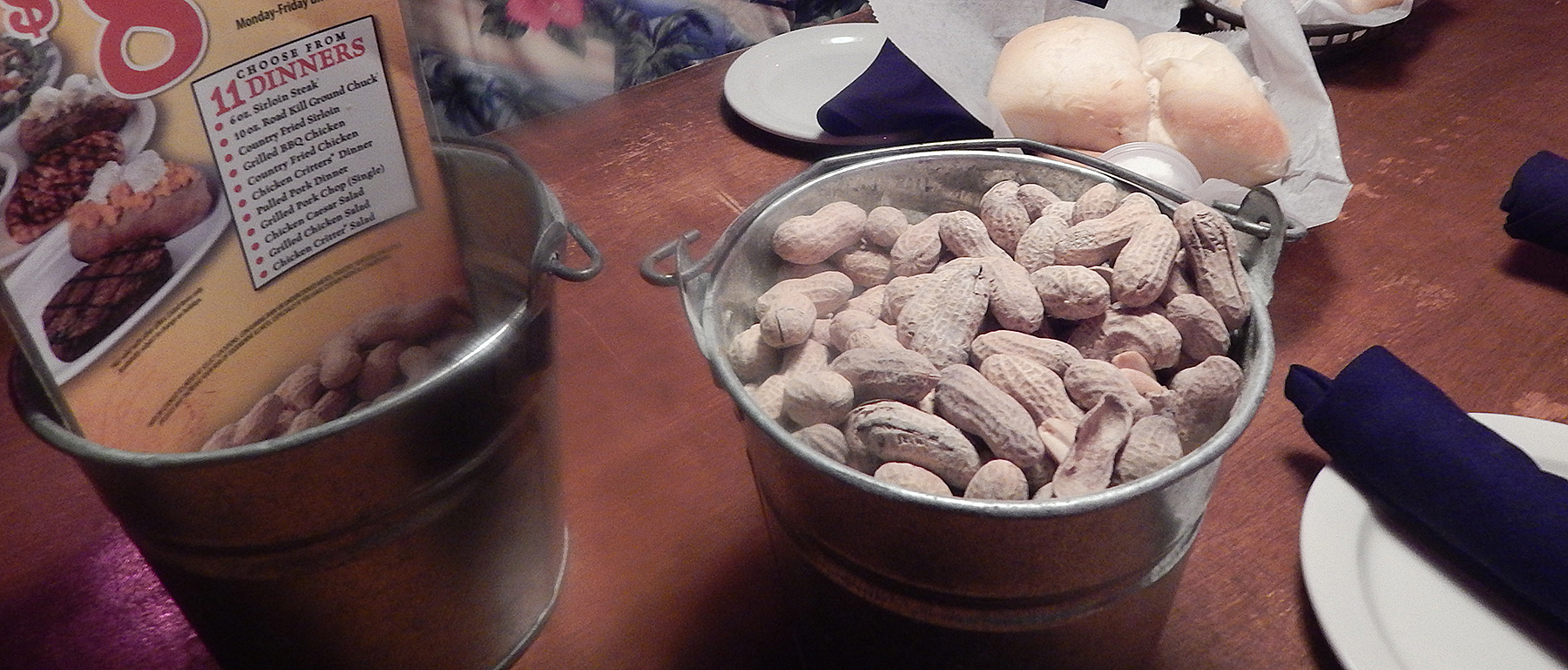 But prevail we did, and the Texas Roadhouse, known for their “legendary experiences” was open and ready for our business—and an experience it was! Upon arrival, the five of us, which included Russ’ mother Mary, honed in on just the right table to satisfy everyone’s needs. Once settled, our perky waitress introduced herself and proceeded to rattle off a string of sentences so fast not a one of us could understand what she had just said, and it didn’t get much easier as the evening wore on.