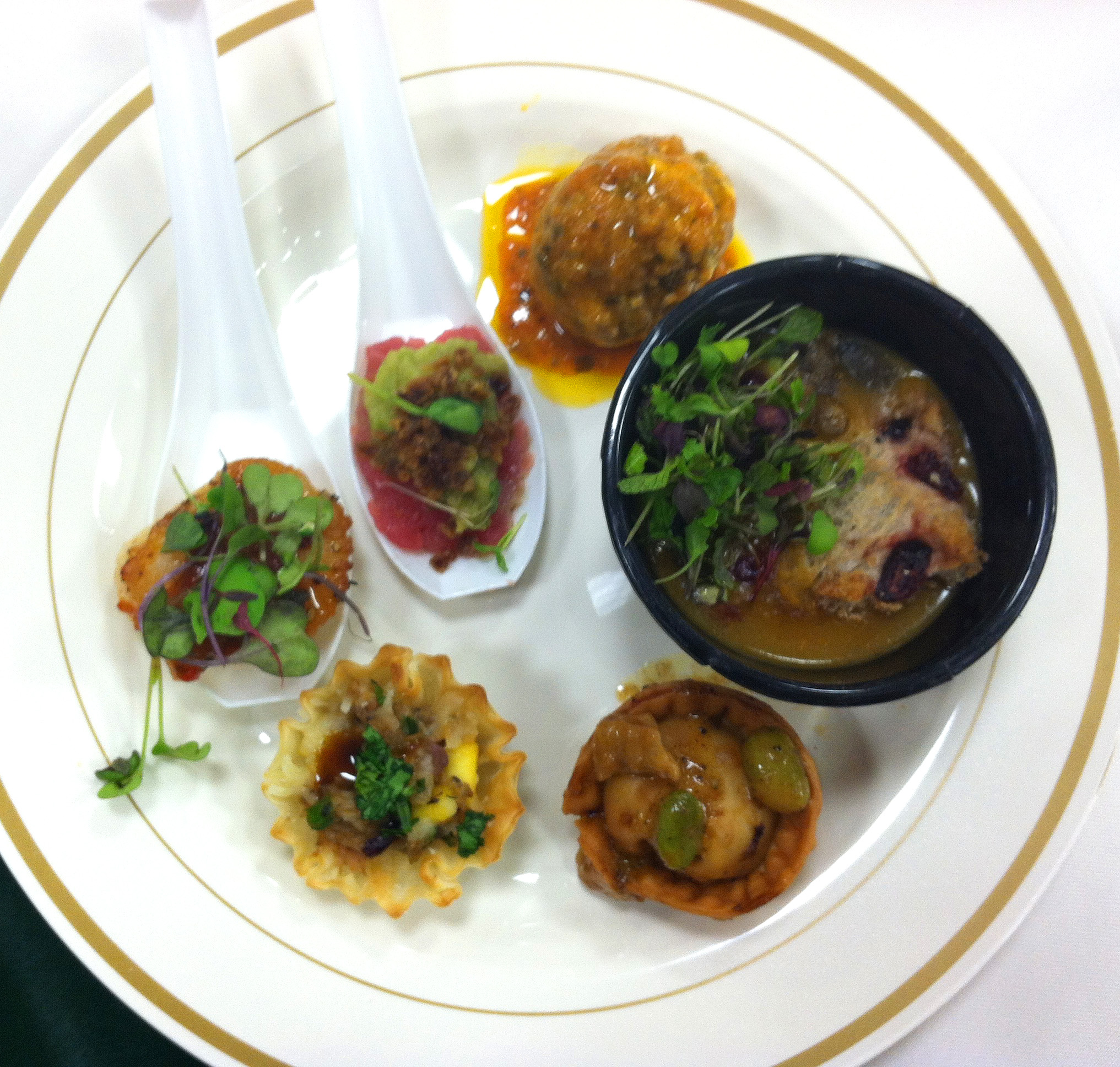 I can’t even begin to describe all of the offerings, but here’s a few more: Pumpkin Soup with Cranberry Crouton and Microgreens, Mini Jalapeño Quesadillas, Tuna Tartar, Italian Meatballs with Mozzarella Cheese, Prosciutto Di Parma, Gnocchi with Brussels Sprout Leaves, Seared Scallop Spoons, Poached Salmon, all kinds of meats, cheeses, olives and spreads.