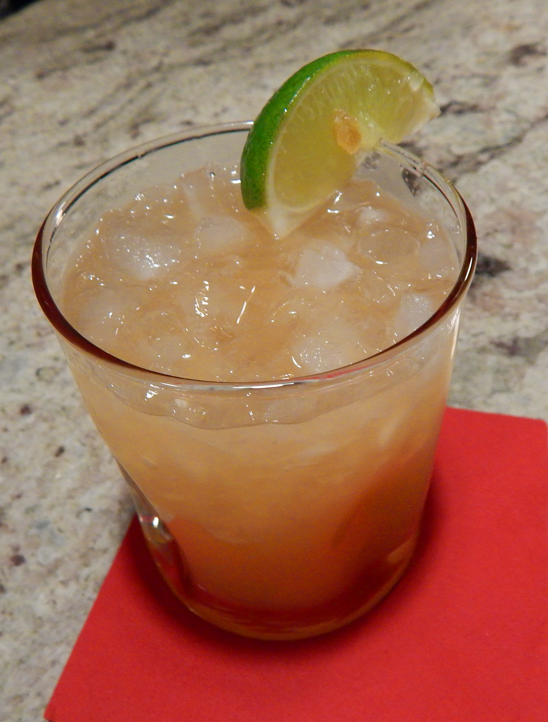 Cut a fresh lime into 6 wedges. Insert a piece of candied ginger into each wedge. Combine all ingredients in a cocktail shaker, add ice and shake. Strain over ice in a rocks glass. Squeeze a lime wedge to disperse the candied ginger into the drink. Sip and enjoy!