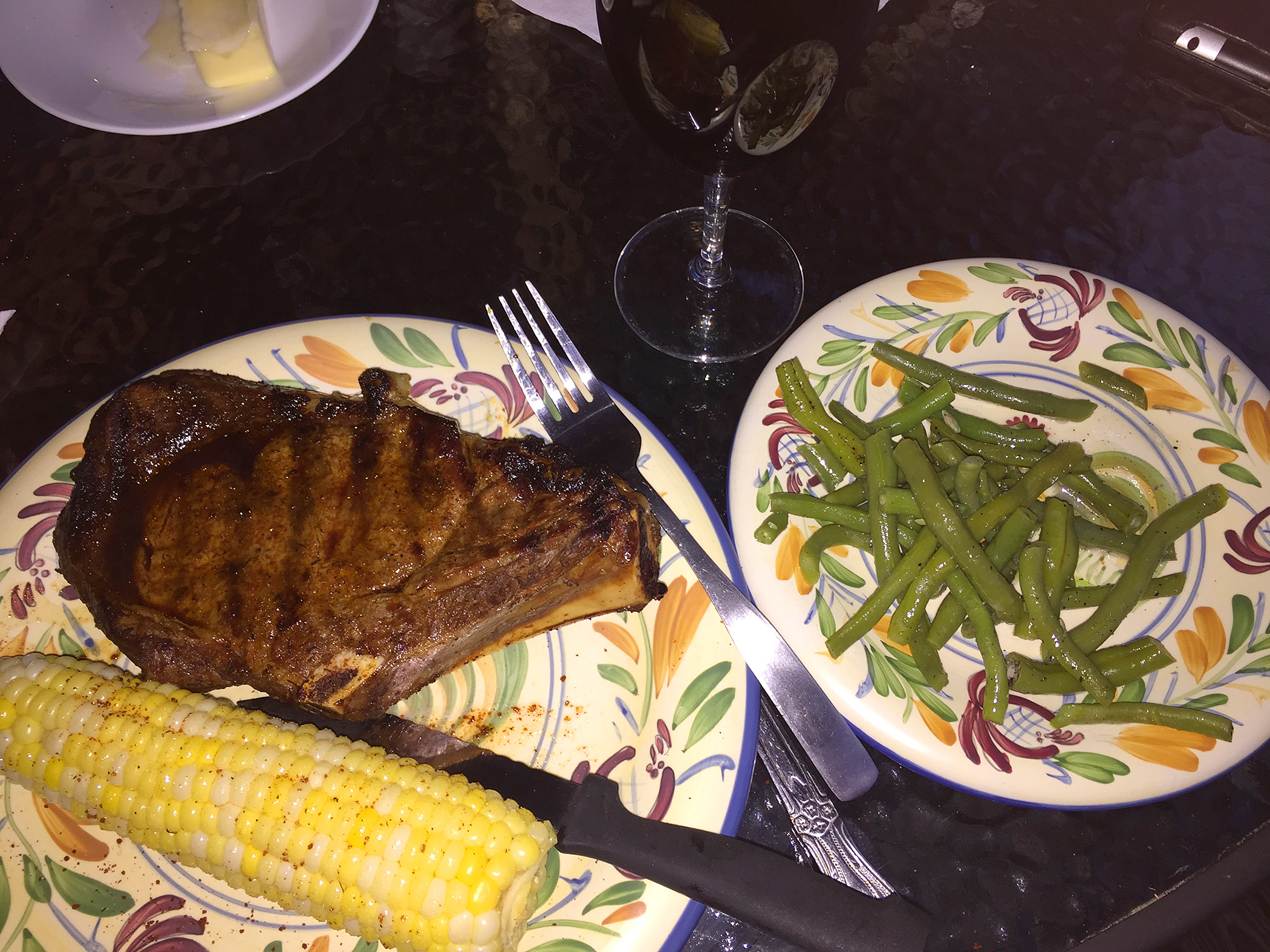In my last blog, we just finished celebrating my birthday at The Terrace at Charlotte Inn in Edgartown, Martha’s Vineyard. With five more days of vacation ahead of us, we decided to take a break from going out to restaurants, and instead, grill on the deck of our rented cottage. Earlier that Wednesday morning, we bought a couple of rib-eyes from Katama Organic Farms where they raise organic grass-fed cattle and sheep and several types of produce.