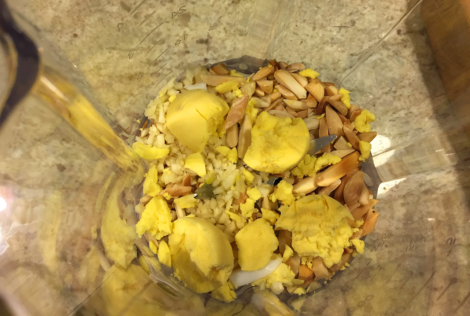 NOTES: Because we did not have regular tortilla chips at home and I was too lazy to run out and buy them, I used Red Hot Blues Tortilla Chips in the processed spice mixture, which in the end I think was a better choice anyway. Next time we make this chili, Russ suggested buying a chuck roast and grinding it ourselves… I guess he thinks we have nothing else to do 😉