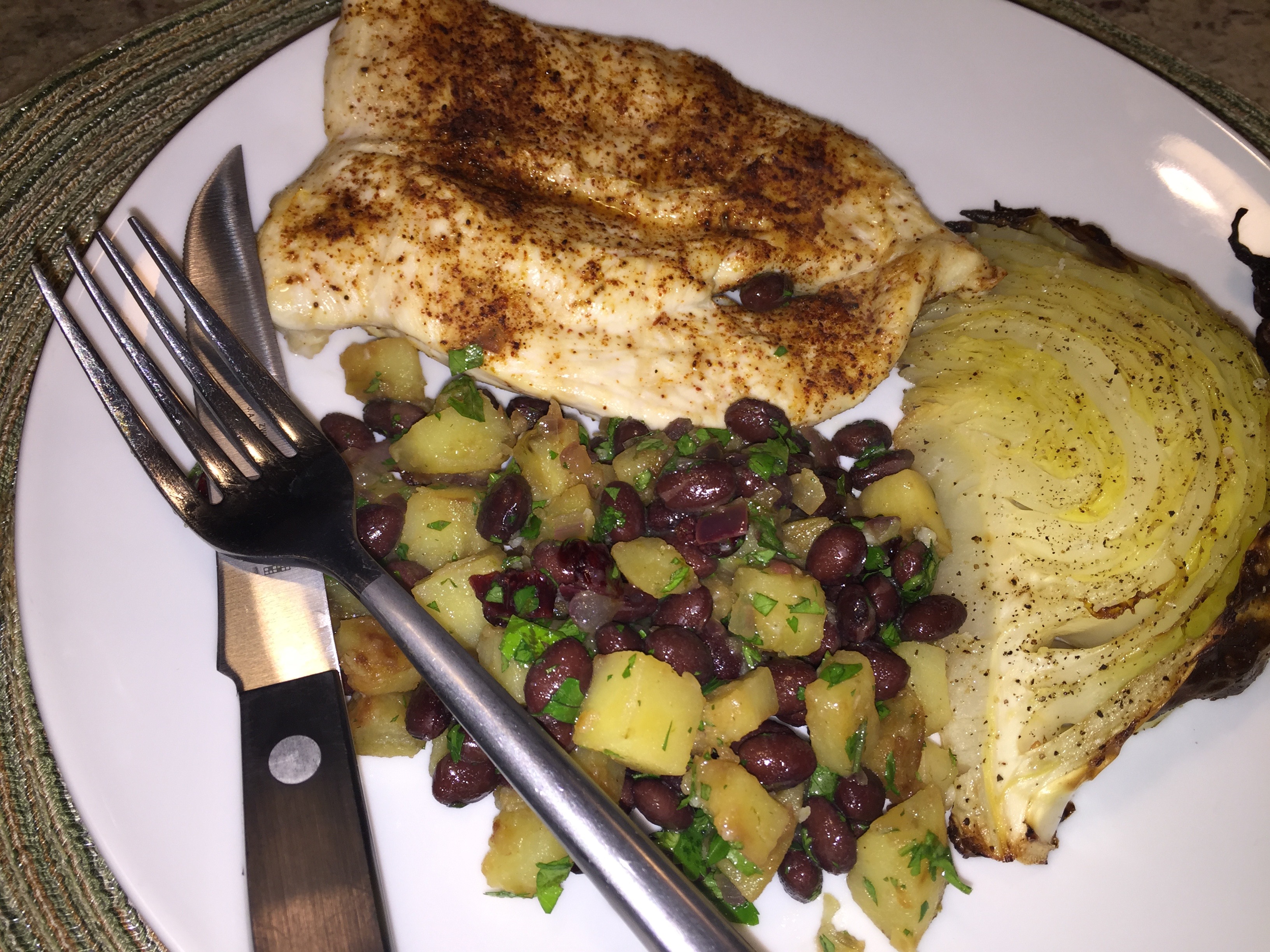 Another plus is, they incorporate some of the same ingredients from one meal to another so that if followed, there is no waste. We’ve been picking and choosing usually two recipes from the supplied weekly total of five. And so far, our meals have been very good and down-right interesting. One of the first meals we made was the Spicy Chicken with Black Bean, Cranberry and Sweet Potato Salsa. This colorful all-in-one meal is full of bold Southwestern flavors, thanks to cumin, chili powder, and cayenne. It even suggested a side dish, in this case Roasted Cabbage Wedges. An odd combination, but it worked—and well! It found it’s way into our recipe bank for future repeats.