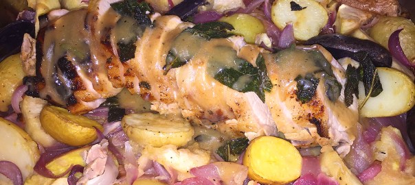 With just the two of us for dinner, I only cooked 4 thighs as opposed to eight, but kept the amount of the other ingredients the same. And OMG, our side dish, Roasted Sweet Potatoes with Apples and Maple-Sage Butter was super delicious!