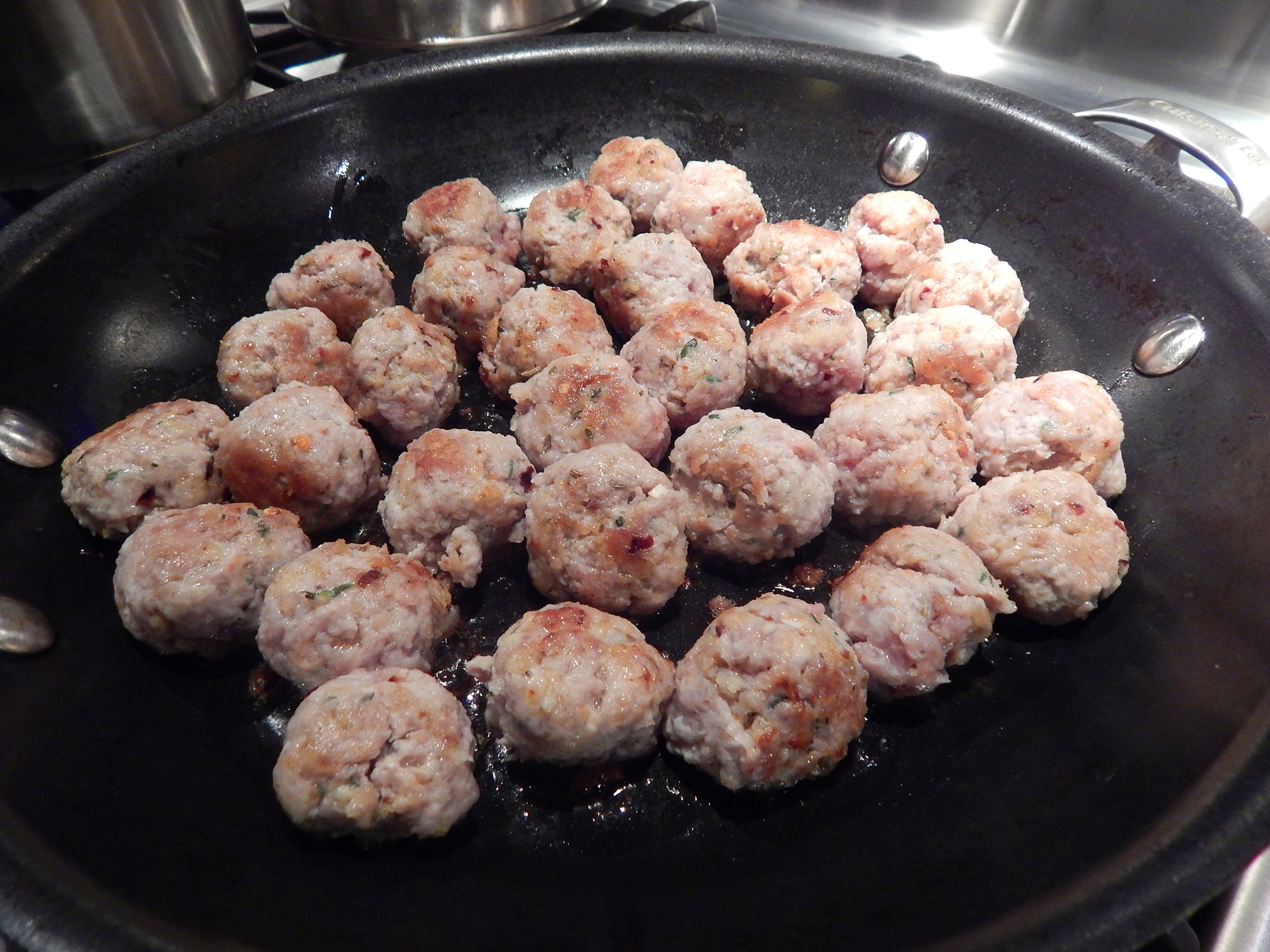 The Mr. looks spiffy in his Chef’s jacket and CIA toque (compliments of Gary and Rosanne) while he browns the lamb cubes.