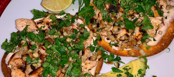 Charred corn and chicken have great summery flavors, but what really makes this tostada sing is the chipotle-lime cream sauce that holds everything on the base. You can buy prepared tostada shells or, as mentioned, make them yourself following the directions in the tip below.