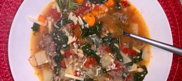 Her father and I were in full agreement. As simple as it was, the meal is truly impressive. Now of course, I made some alterations. It was originally supposed to be served over grits—not necessarily one of my faves. Our substitute was instant polenta, but mixed with homemade chicken stock, an instant flavor enhancer.