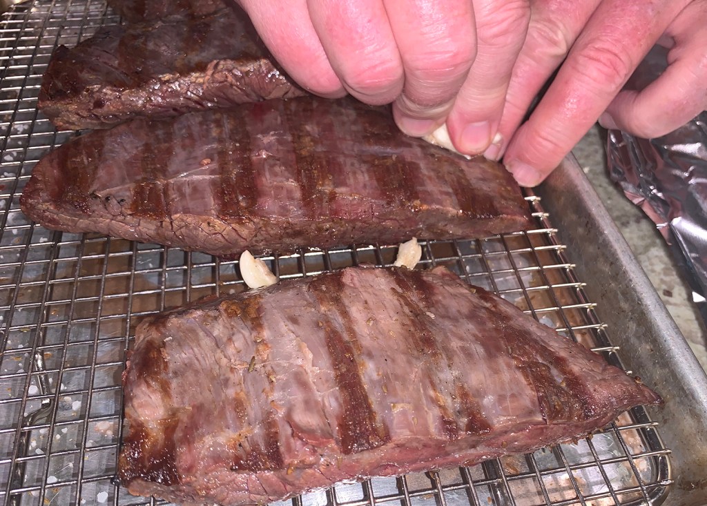 Our lamb was grilled to an internal temperature of 125° for medium-rare. Make sure to have an instant read thermometer to check for doneness. We expected our meat to be finished sooner than it did, but because it was vacuum-packed it actually puffed up once out of the package and became thicker! And of course it needs to rest for 5-10 minutes so the juices redistribute.
