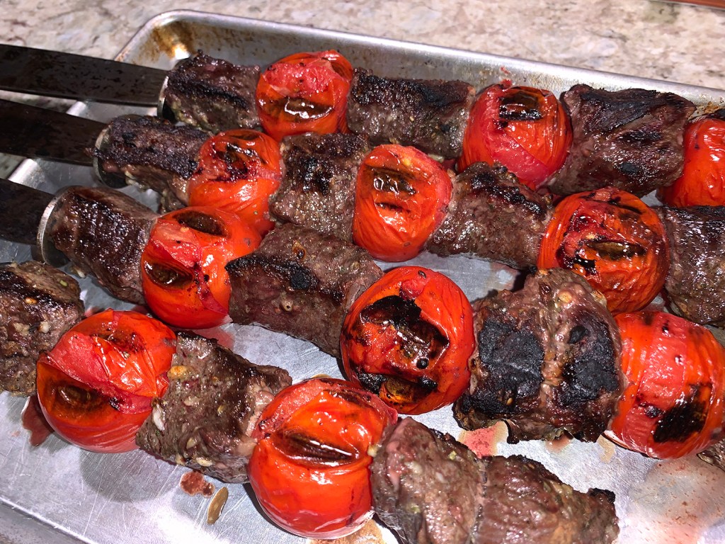 The sides of grilled vegetable medley and hot fresh corn on the cob were perfect accompaniments for the summer meal. There will be extra marinade after you put the lamb on the grill, so if you’re so inclined, you can baste the meat with it or, like we did, mix some in with your grilled veggies as they cook. (Psst, it is equally as tasty on chicken and pork.)