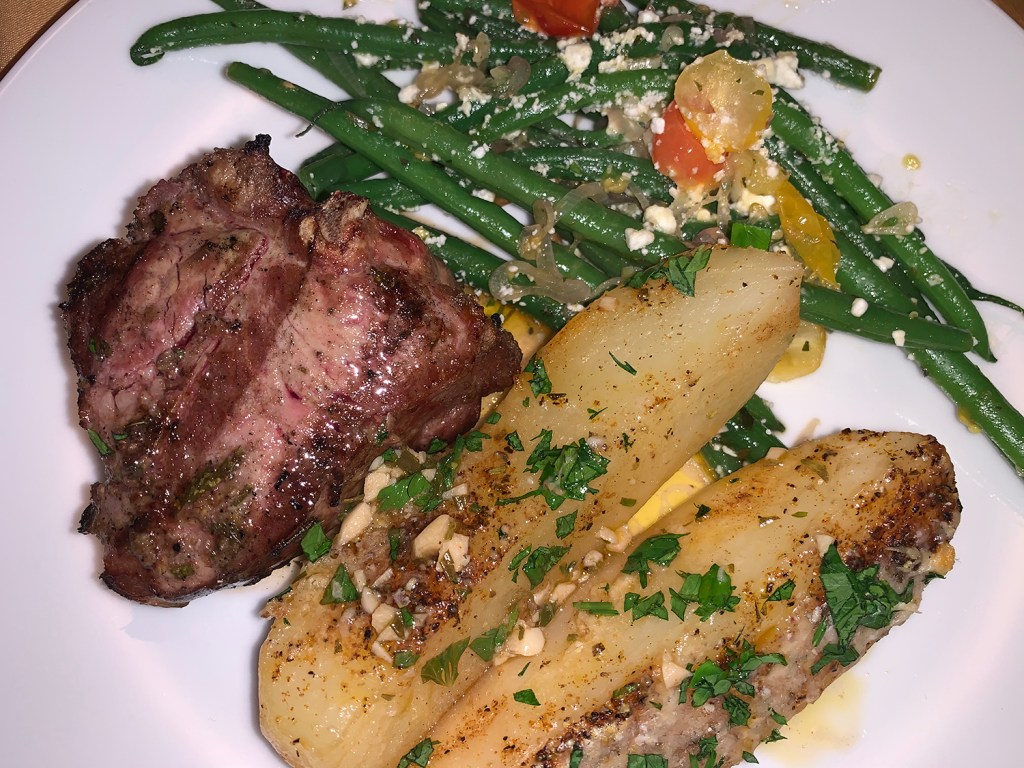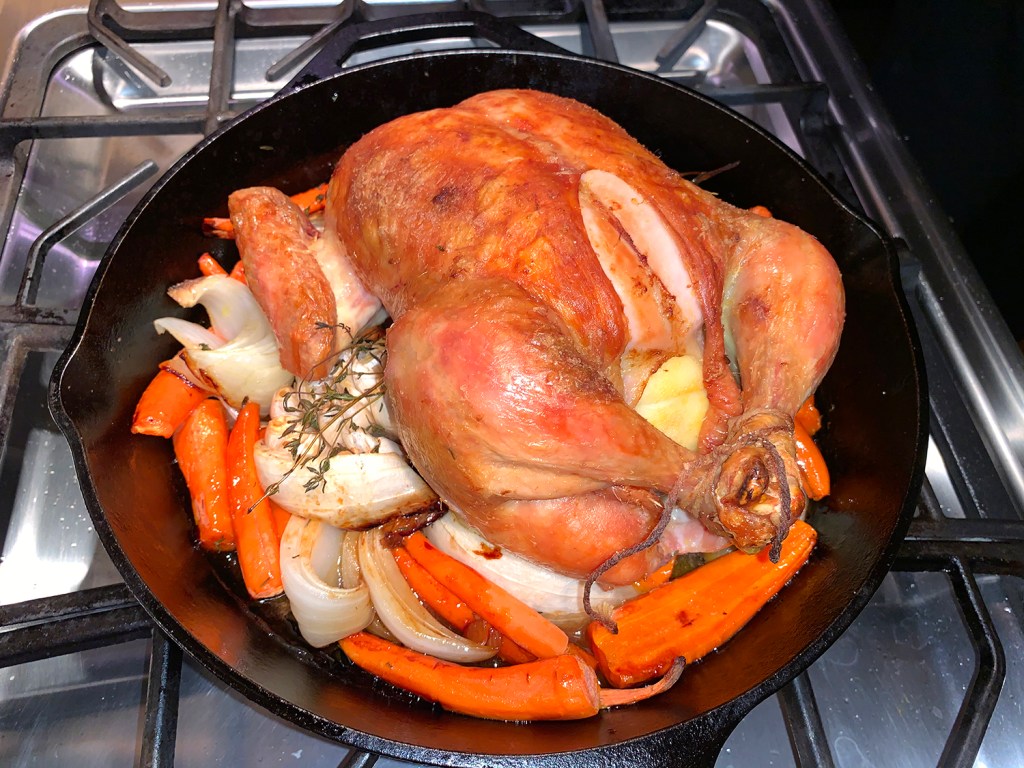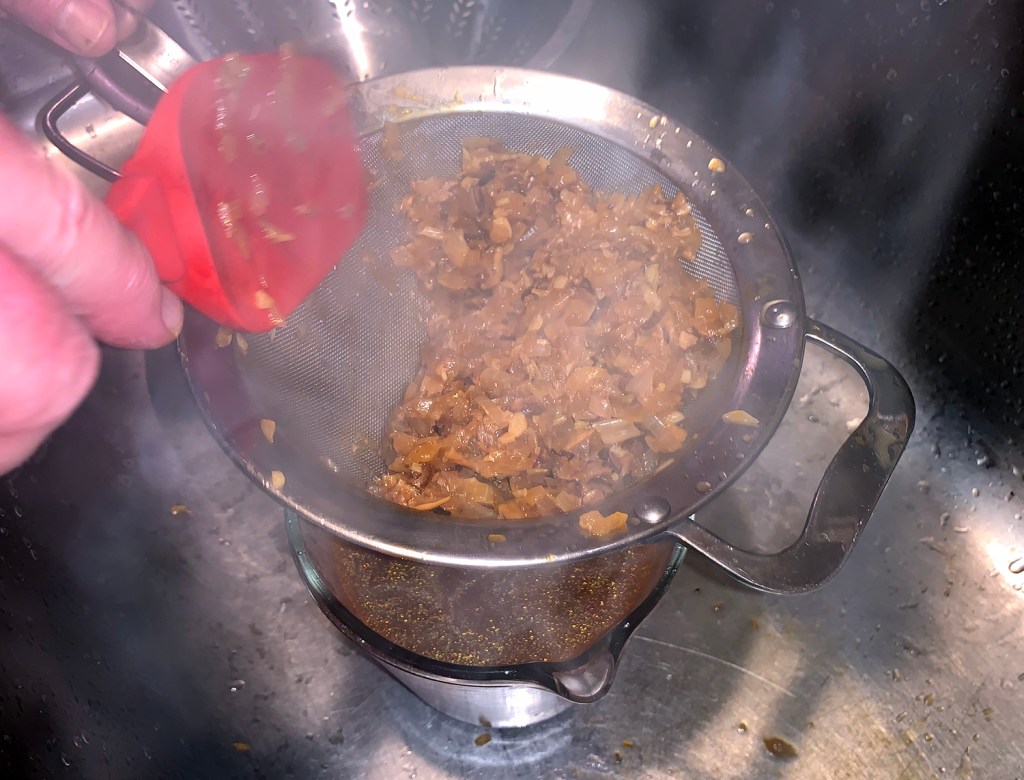 At the very end of the cooking process, we weren’t satisfied with how thin the liquid in the stew appeared. Russ made a last minute decision to make a slurry from corn starch and water to thicken the sauce. It only took another couple of minutes, and not only coated the meat nicely, it gave a more substantial appearance overall.