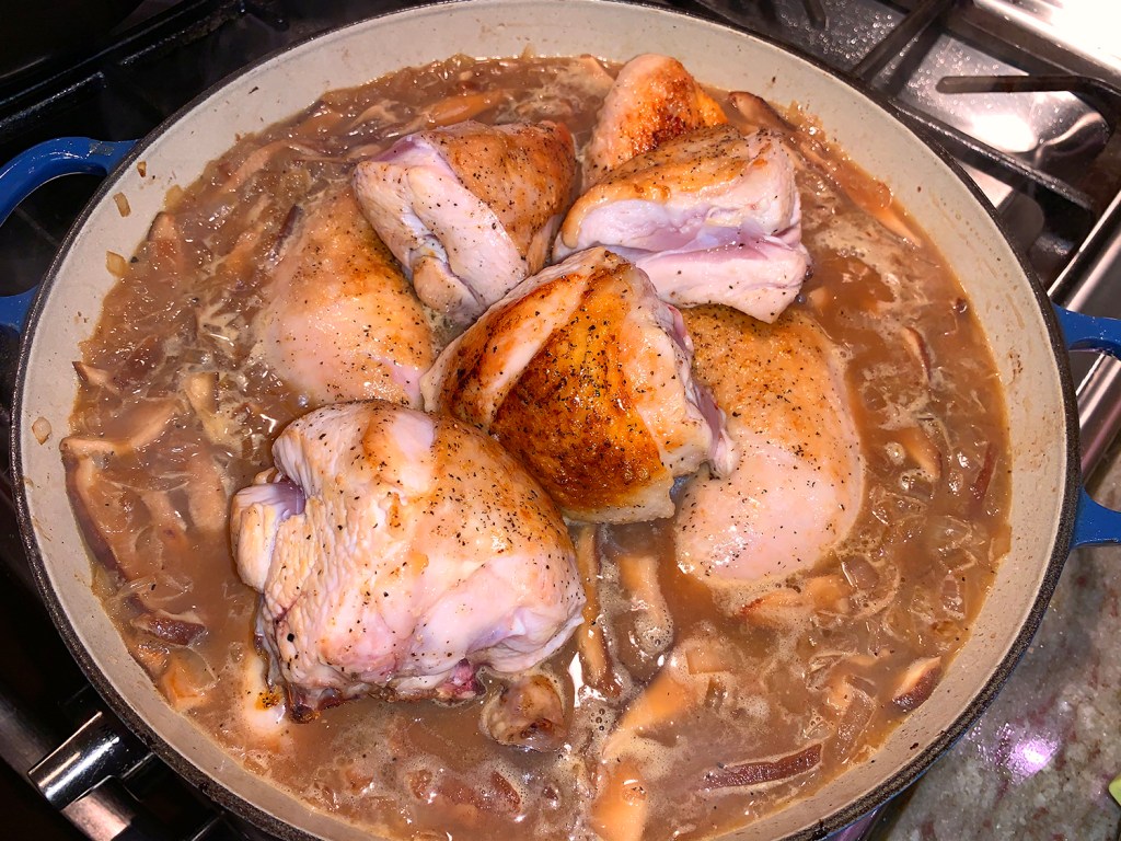 - Add the pork and any accumulated juices. Reduce the heat to medium-low and cook, covered, stirring occasionally, until the pork is tender, about 1 hour.