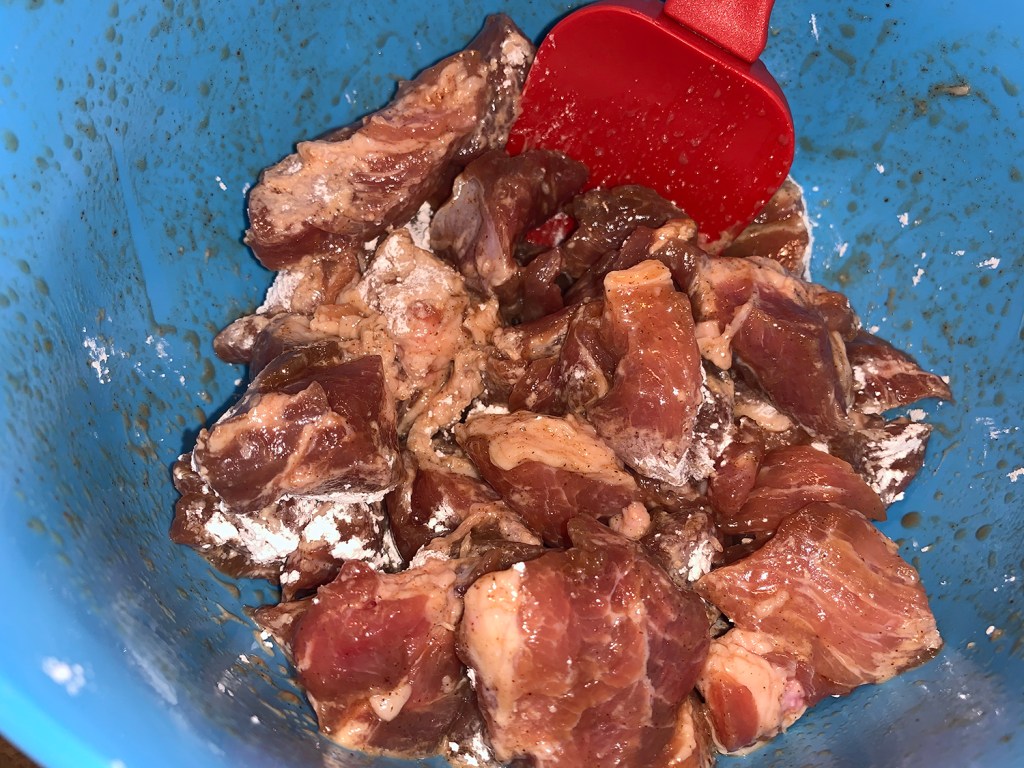 - Sprinkle the pork with the cornstarch and toss to coat.