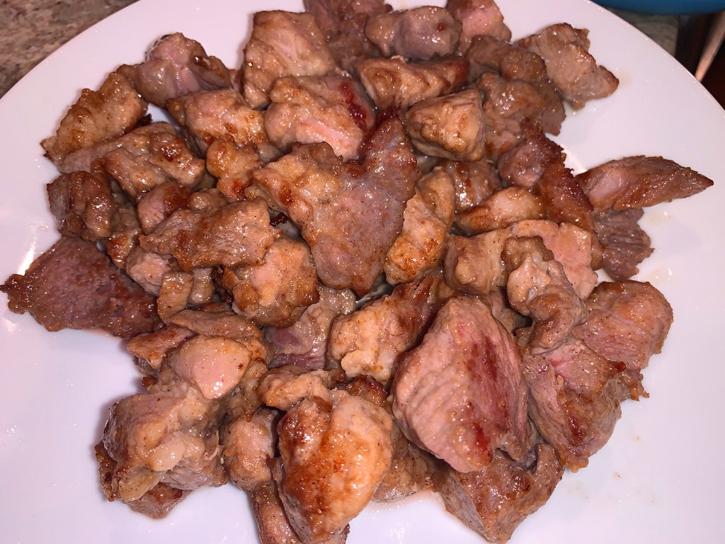 - 2 lb. pork shoulder, trimmed of excess fat, cut into 1″ pieces