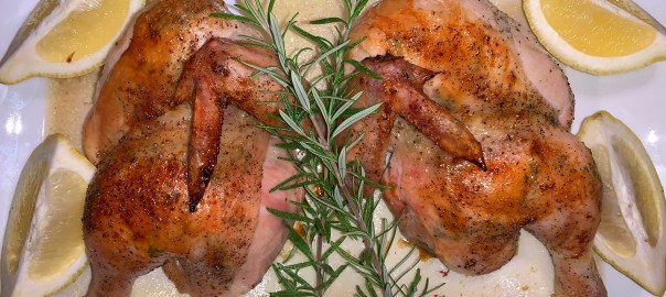 - When the cake is done, cool in the pan on a wire rack for 15 minutes. Remove and discard the rosemary from the cooled syrup, then drizzle about a quarter of the syrup onto the warm cake. The syrup will not be immediately absorbed; let stand for about 5 minutes to allow it to soak in. Drizzle on the remaining syrup in 3 more applications, allowing a 5-minute rest between each.