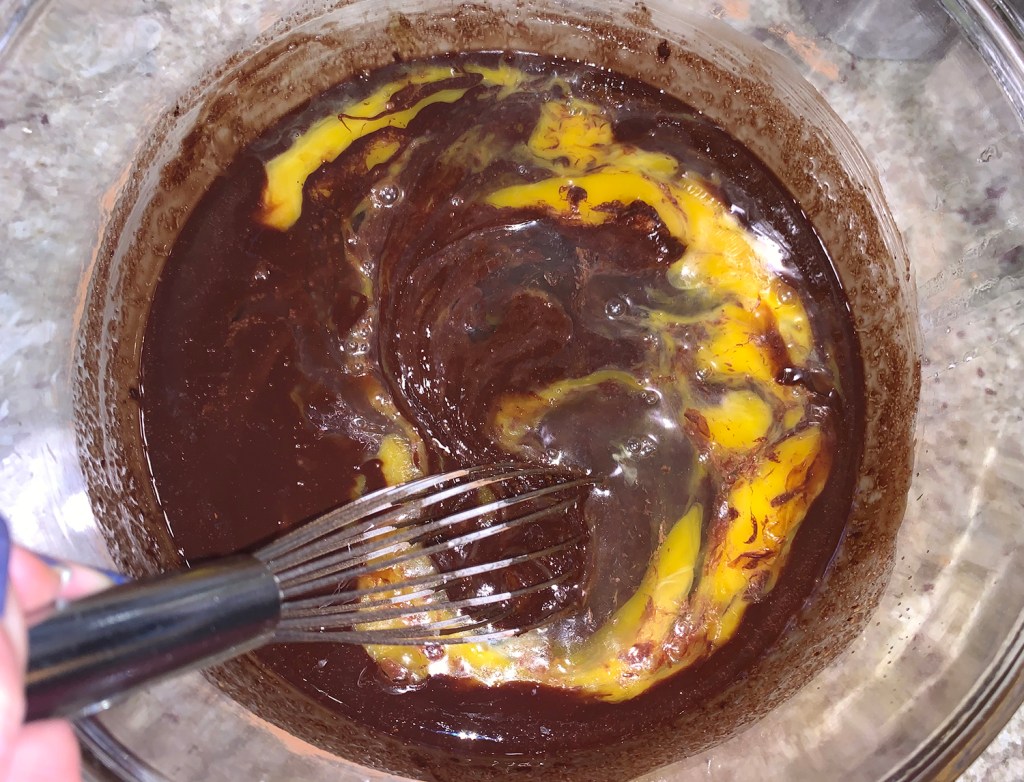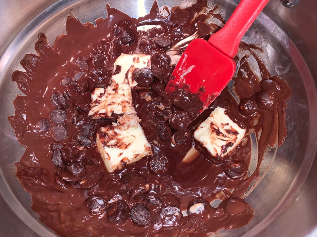 - In a medium bowl, combine the chocolate and cocoa. Pour the boiling water over top, jiggling the bowl to ensure all the chocolate is submerged. Let stand for 1 to 2 minutes, then whisk until smooth; set aside.