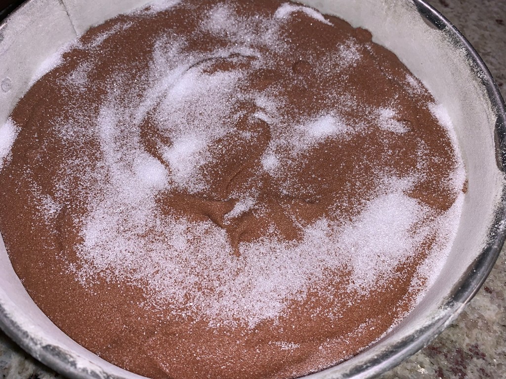 - Transfer the batter to the prepared pan and spread in an even layer. Sprinkle evenly with the remaining 2 tablespoons sugar. Bake until the cake forms a thin, crisp center crust and a toothpick inserted at the center comes out clean, 40 to 50 minutes.