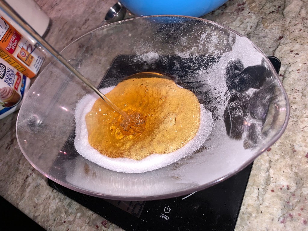 - Meanwhile, make the syrup. In a small saucepan, combine the sugar, honey, rosemary, salt and ⅓ cup water. Bring to a boil over medium, stirring occasionally to dissolve the sugar. Transfer to a liquid measuring cup and cool to room temperature.