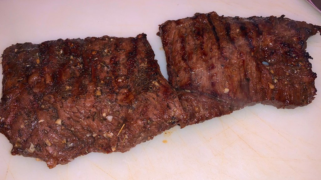 Alternatively: Cook the steak two minutes per side in a cast iron skillet that had been preheated in a 500 degree oven with olive oil. Result: caramelized edges and medium rare middle.