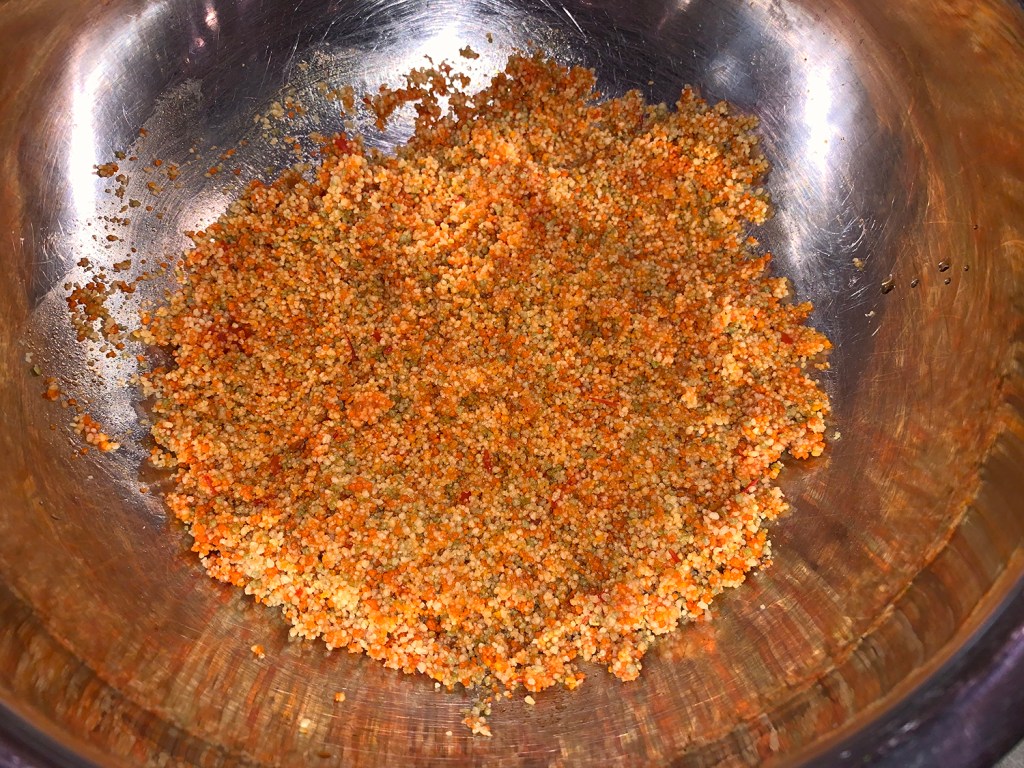 While the directions were followed as written, the next time we prepare this dish, we’ll brown the meat in the skillet first, remove it to a dish, wipe out the grease, and then cook the scallions as directed, adding back the cooked lamb afterwards. The original way leaves all of the fat in the pan.