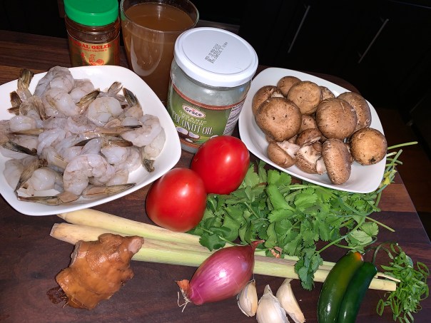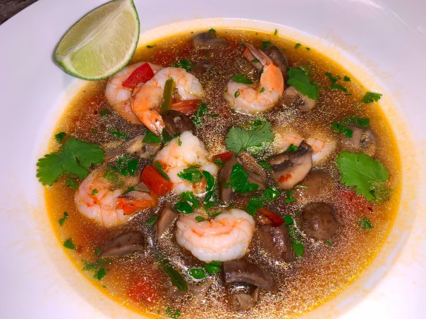 Originating in Thailand, this soup is a hot and sour bowlful of local ingredients like Thai chili peppers and lemongrass. These are available in Asian markets, but there are swaps that are easier to find in a pinch, if needed. We jokingly called it “Tom Oh-Yum” due to the fact it was St. Patty’s Day when we made it.
