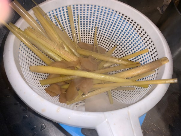 2 stalks fresh lemon grass, trimmed to the bottom 6 inches, dry outer layers discarded, bruised