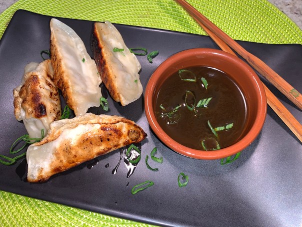 Pan-fried dumplings make a nice first course. Often available in the freezer section of supermarkets or Asian grocery stores.