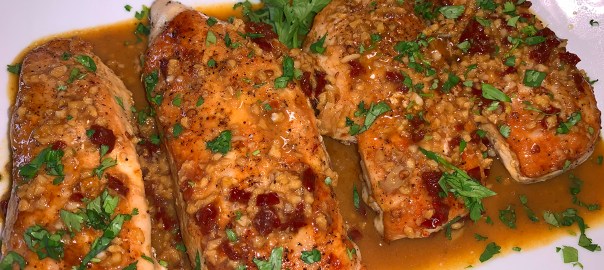 A richly caramelized crust, juicy and flavorful interior, and a sauce so irresistible you’ll be tempted to eat it right out of the skillet. Take note, while the cooking portion is a mere 15 minutes or so, the seasoned poultry needs to be refrigerated uncovered for two hours, then sit at room temperature for another 30 minutes.