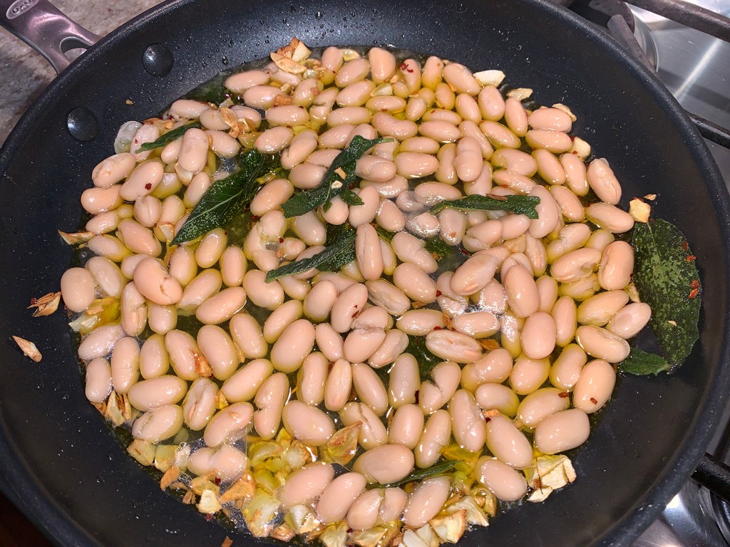 Smelling the amazing aroma as the sage leaves sizzle is just the start—something magical happens when they fry—the flavor becomes more subdued and a bit toasty. Often, white bean dips appear as a chalky and bland alternative to hummus, typically why it’s not one of my favorite appetizers. But this riff definitely raises the bar.