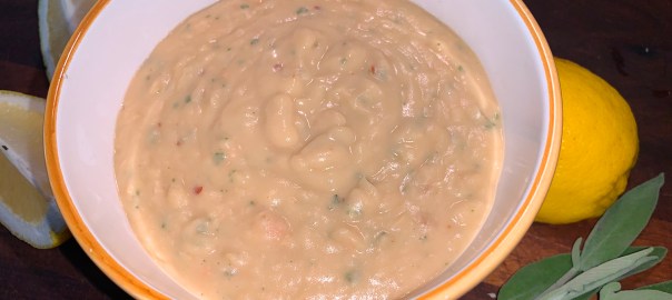 What are the secrets to transforming a can of humble white beans into an elegant appetizer—especially if your guests follow a gluten-free and/or vegan diet? Creamy, nutritious and infused with sage, lemon and garlic, this Sagey White Bean Dip is so versatile! Amazing as a dip, yes, but also great on sandwiches!