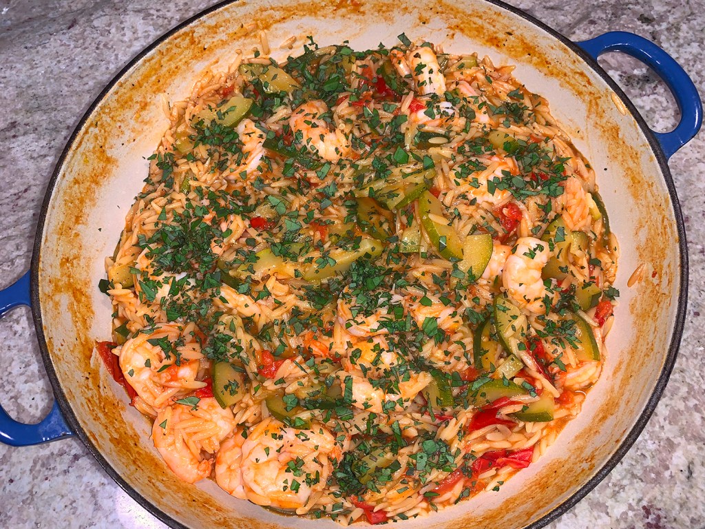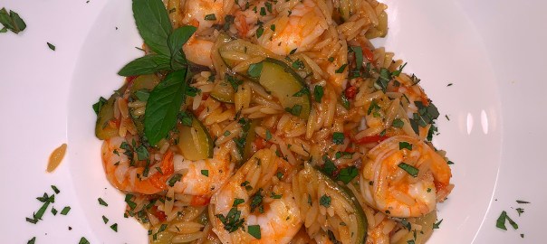 Shrimp, Orzo and Zucchini with Ouzo and Mints