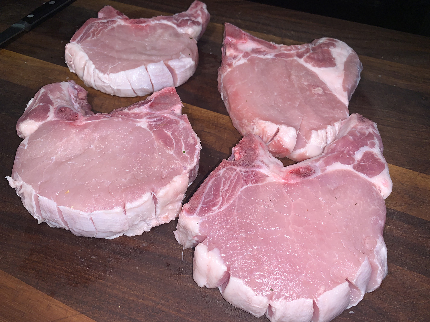 - 4 10- to 14-oz. bone-in pork chops, each 1 to 1½ inches thick