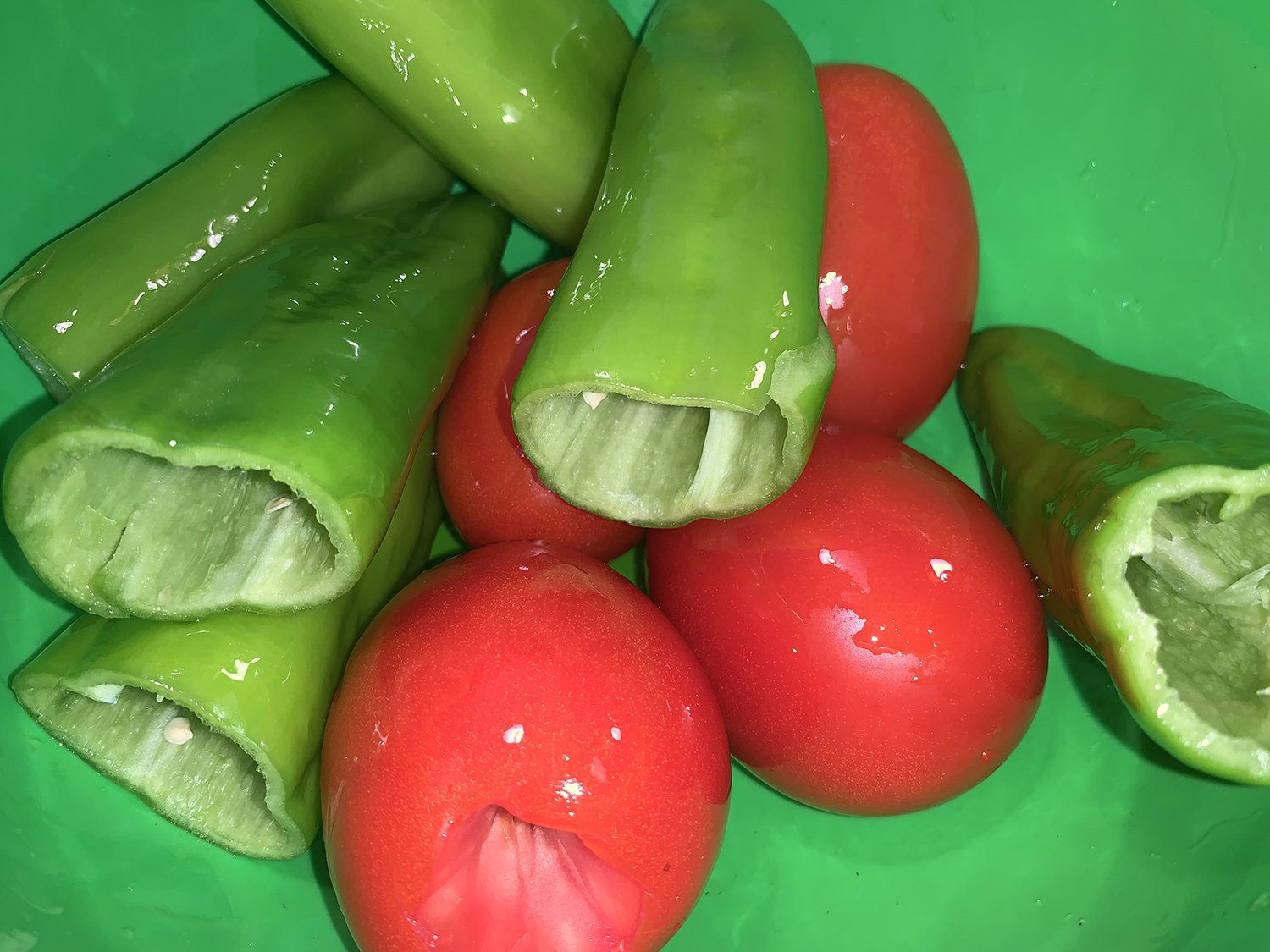 - 12 oz. Cubanelle peppers, Hungarian wax peppers or Anaheim chilies, stemmed, kept whole and seeded