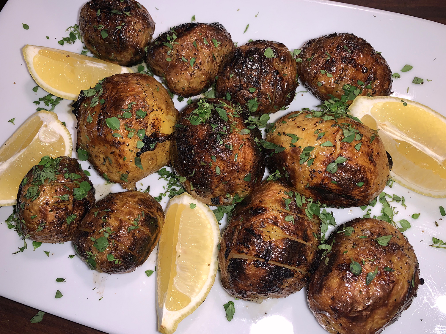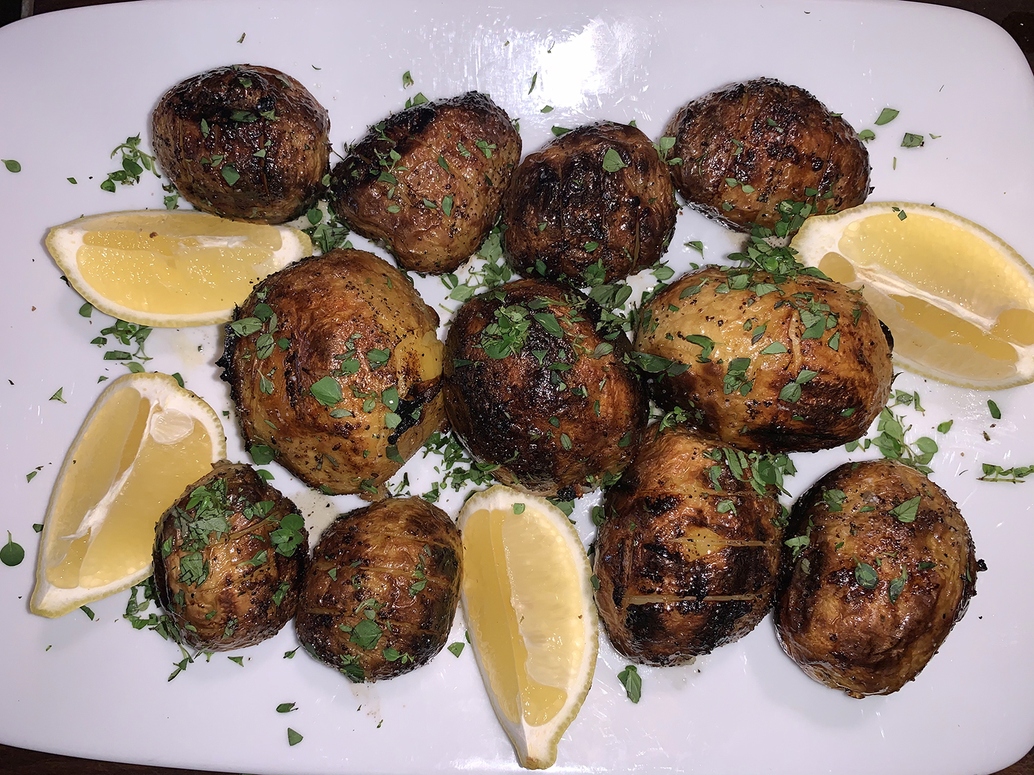 In a nod to son David’s fiancée Vikki, who has Armenian heritage, we decided to make this meal paired with another dish from the same country, Armenian Grilled Potato Skewers (recipe below). It’s pretty important to get spuds that are the same size, but was an impossible task at the time we were grocery shopping. So we had several that were larger and had to preboil them a bit longer as well as grill them several more minutes.