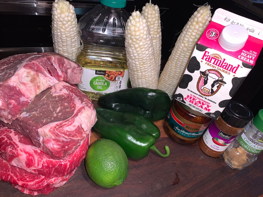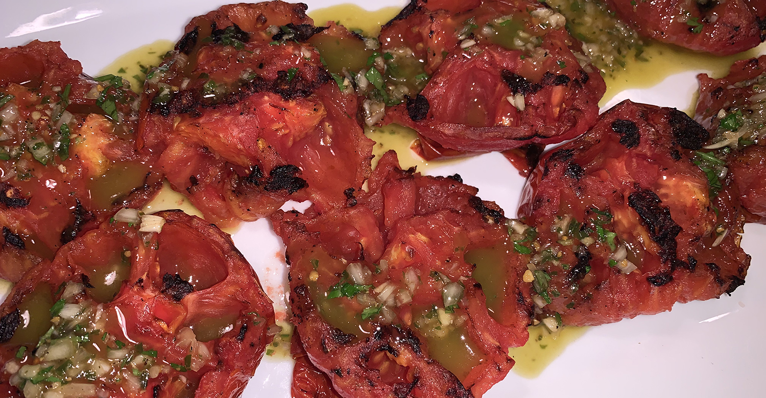 The citrus marinade in this recipe is made of a combination of wine, orange juice, lime juice, olive oil, tomato paste for color and umami, and fresh garlic, onions, rosemary, and other Mediterranean spices.