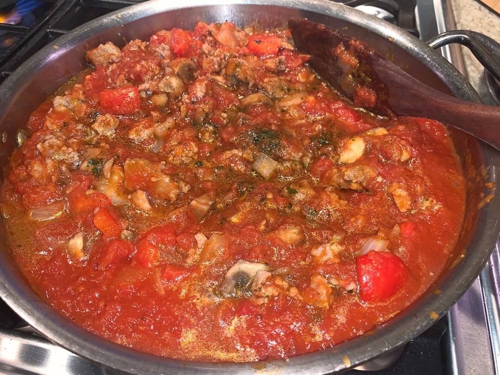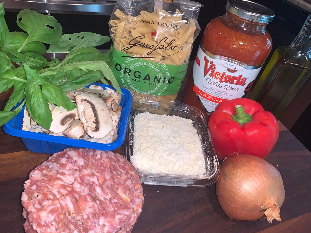 What is one of your fall-back dinners when you really have nothing planned but need to get dinner on the table in 30 minutes or so? One of our go-to recipes is based on pasta. We pretty much always have some in the pantry, and with a ground meat of some type such as beef, turkey, lamb, or sausage this becomes the basis for dinner.