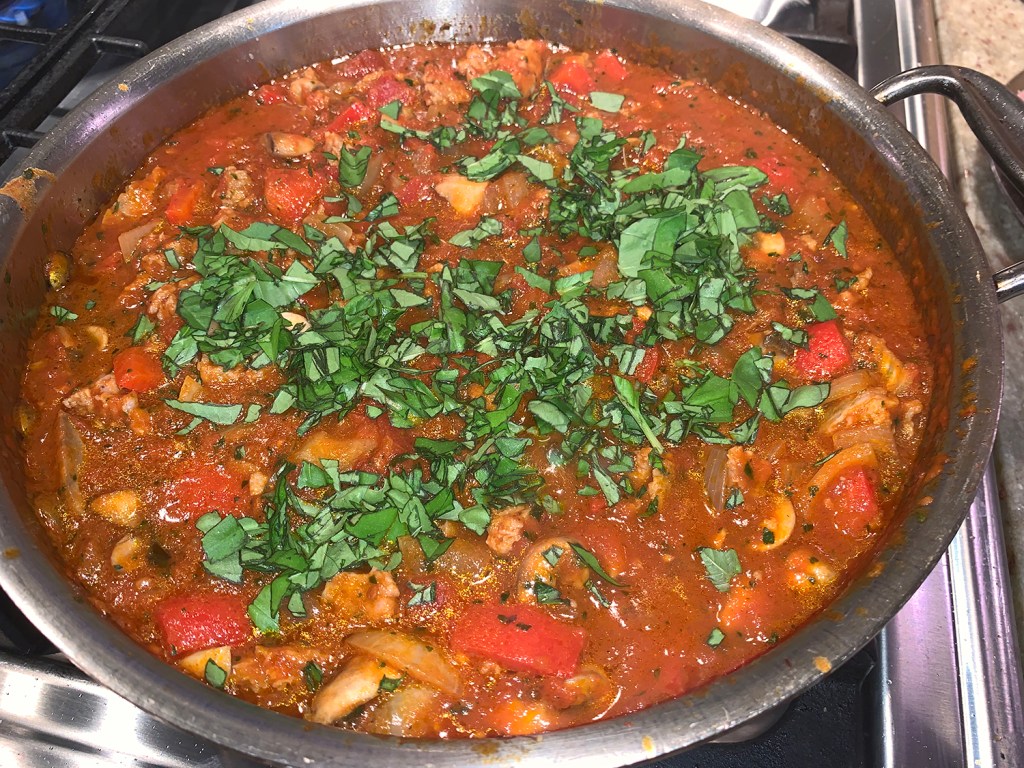And if there is no homemade red sauce in our freezer, we always have a commercial jar or two in the cupboard. Our current choice happens to be the great tasting White Linen brand with a low-sugar content which can be found at Costco. It weighs in at a hefty 40 ounces allowing for lots of add-ins.