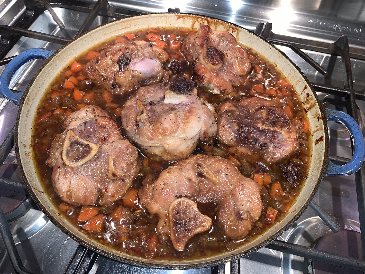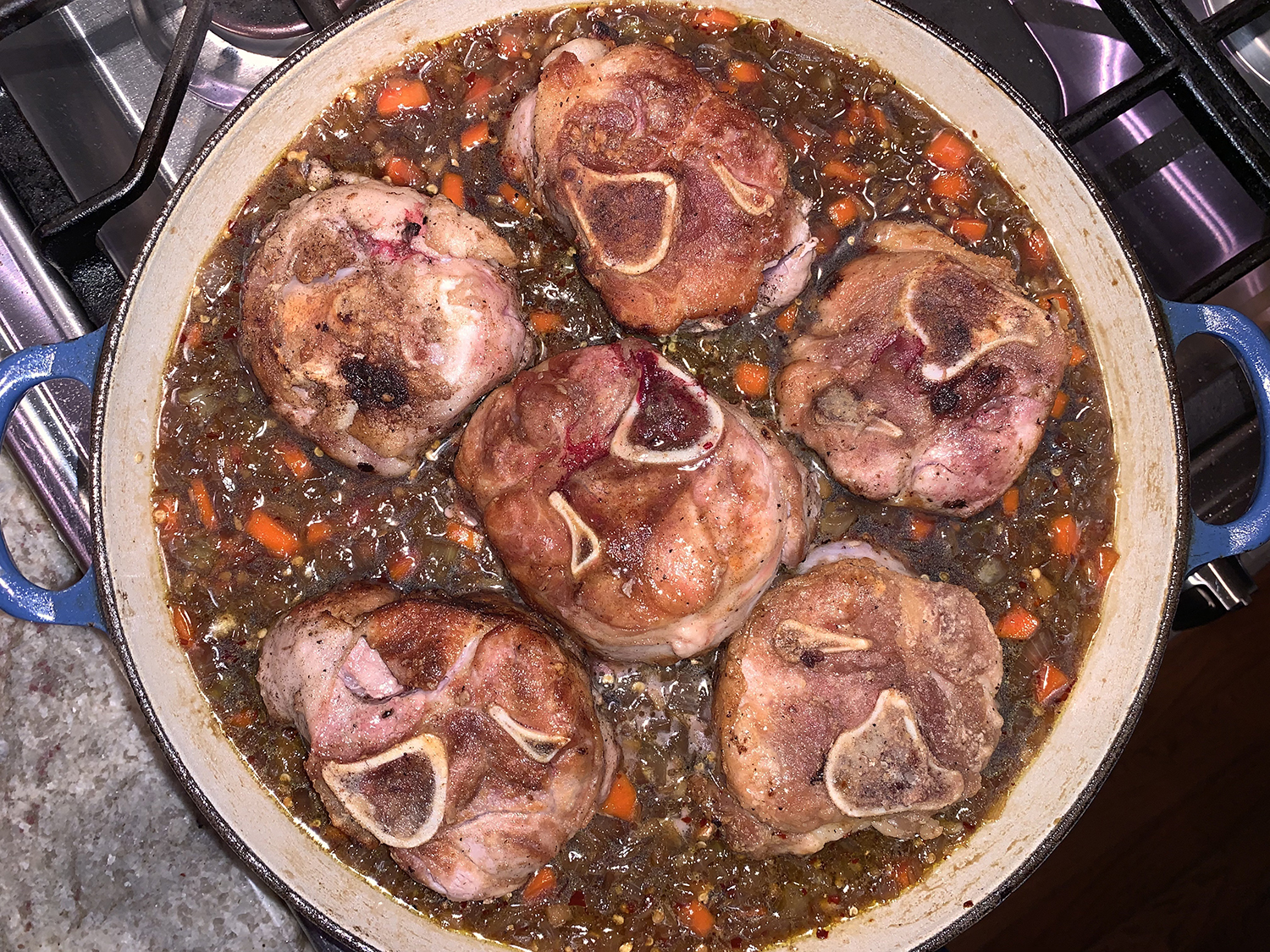 - Lower heat to a simmer and reduce until desired thickness. Can thicken broth with a cornstarch slurry if desired. Serve shanks and pass sauce separately.