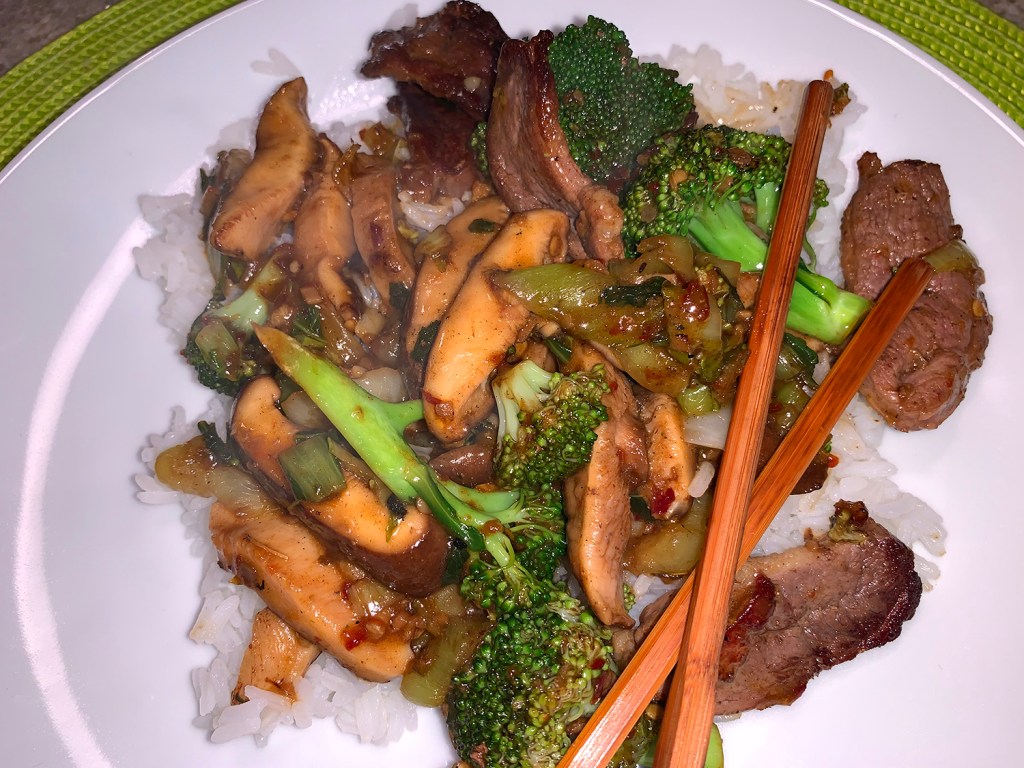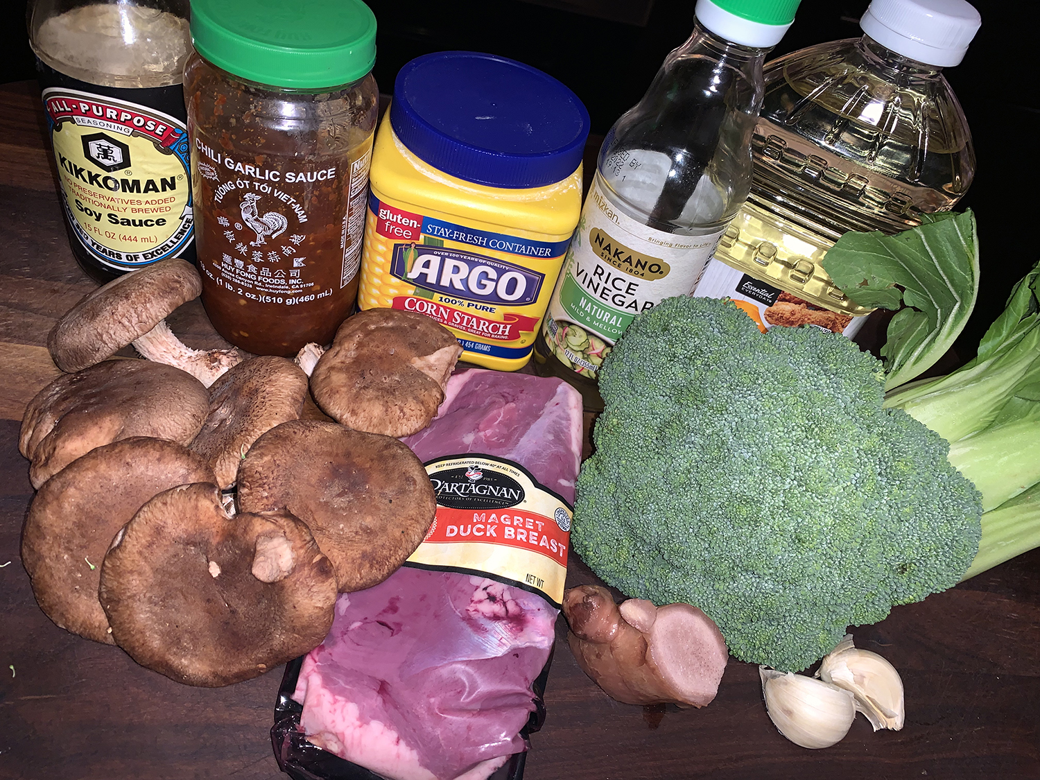 As with most stir-fries, this one is quick and tasty, perfect for a weeknight meal. Originally from EatingWell Magazine, we altered the ingredients by doubling the sauce, and amping up the amount of shiitake mushrooms. And if you’re squeamish about eating duck, go ahead and substitute pork tenderloin, chicken or even beef strips.