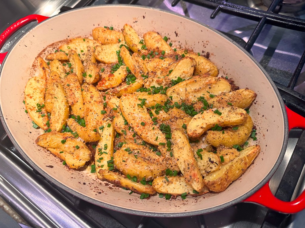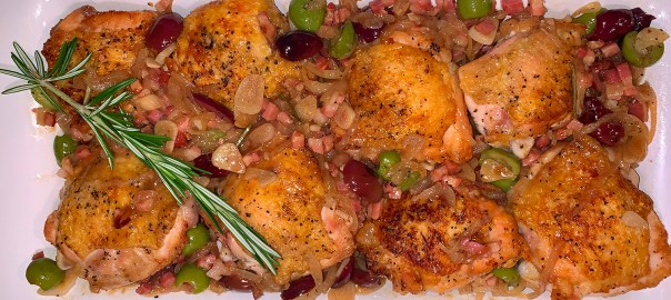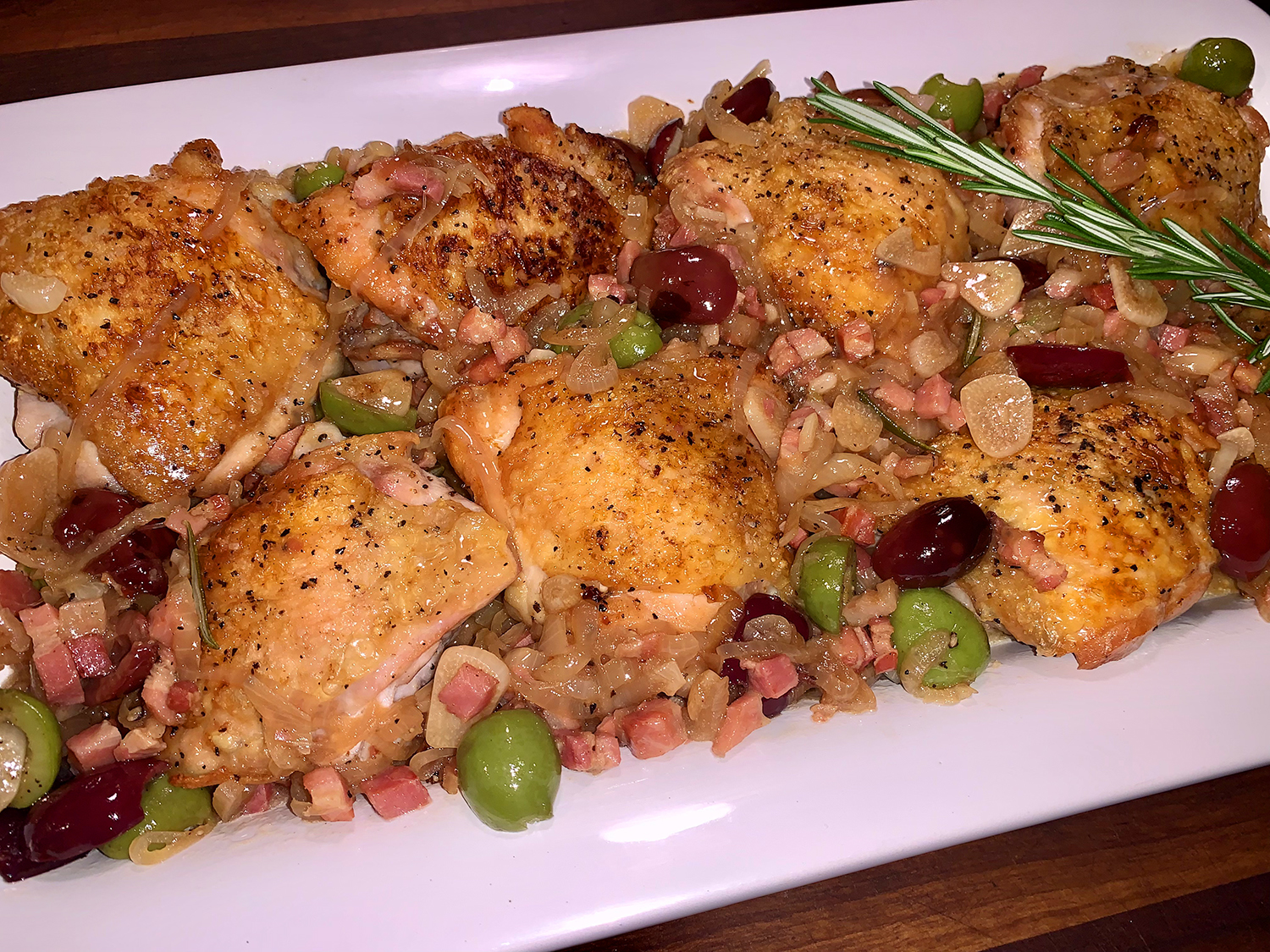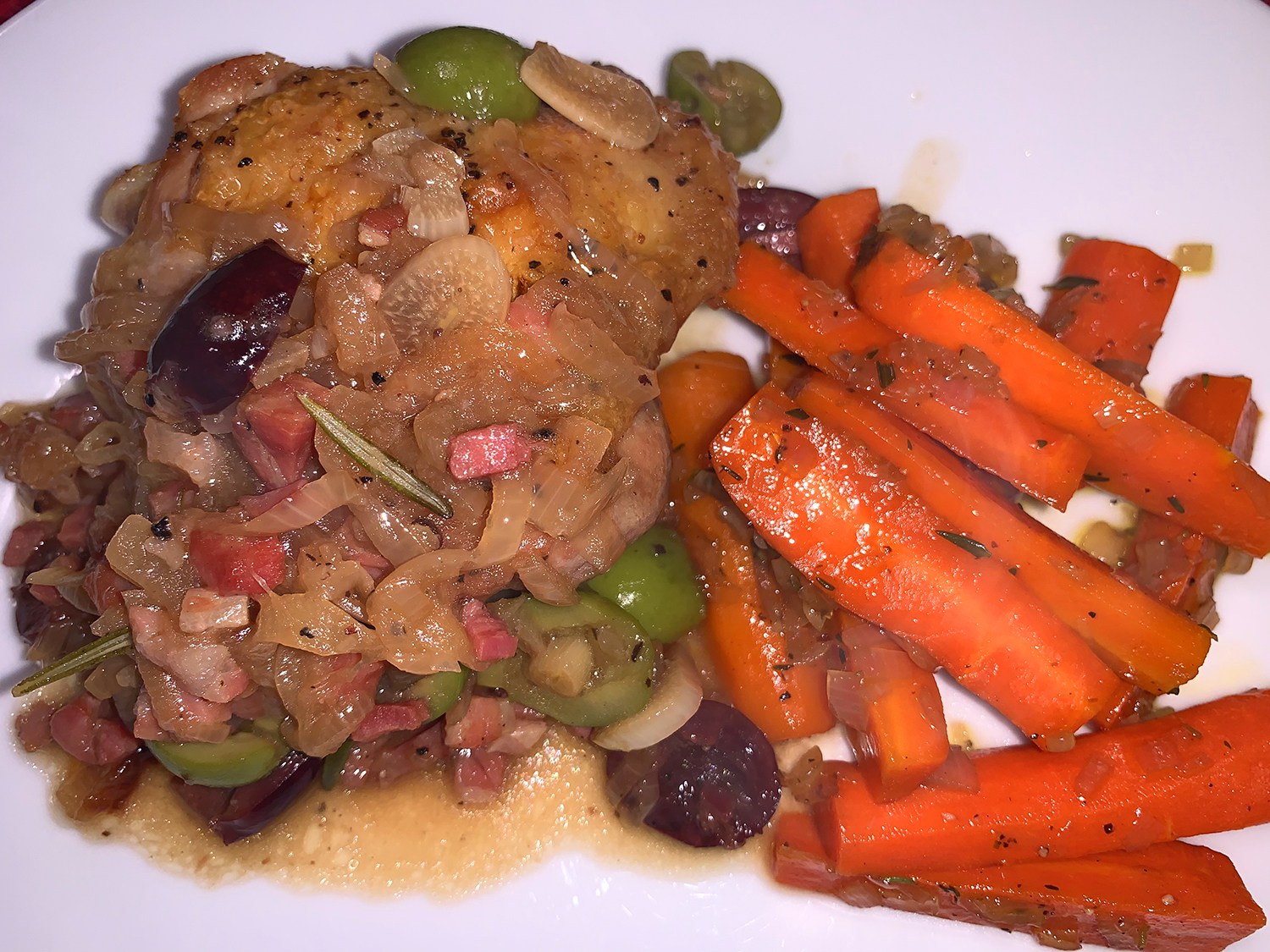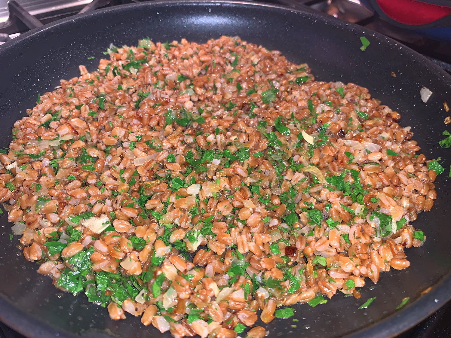 The original recipe called for 3 shallots, but we more than doubled them to 7 (noted below), all their jammy goodness paired wonderfully with the seasoned chicken, as did the lemon. As sides, we prepared a Warm Farro with Lemon and Herbs dish, and some charred broccoli.