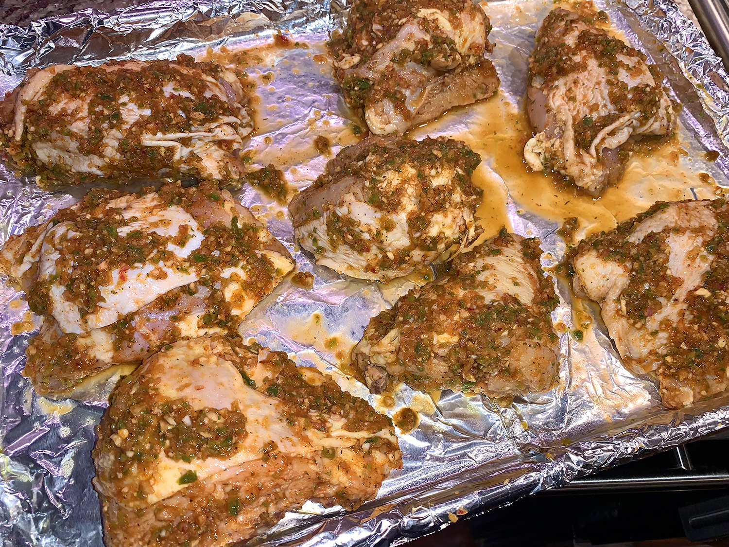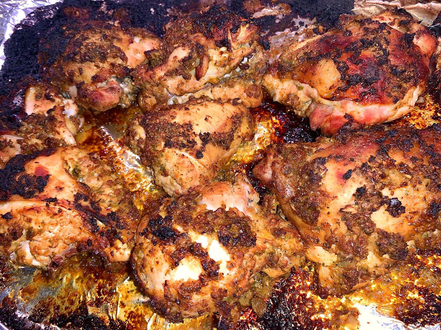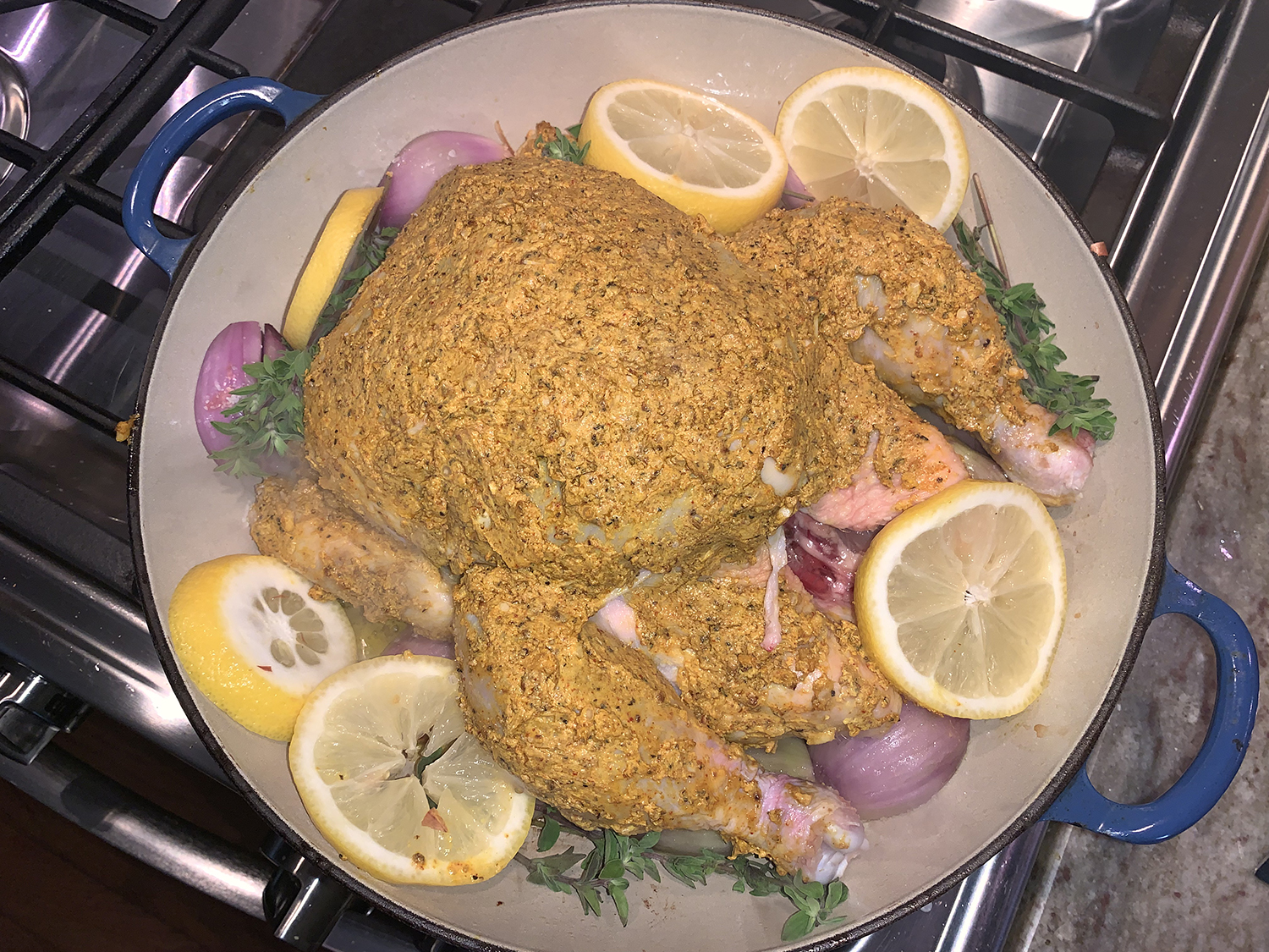 - Generously season chicken with salt, then smear yogurt mixture all over. Let sit on a rimmed baking sheet at room temperature at least 30 minutes, or chill, uncovered, up to 12 hours. If chilling, let chicken sit at room temperature 30 minutes before roasting.