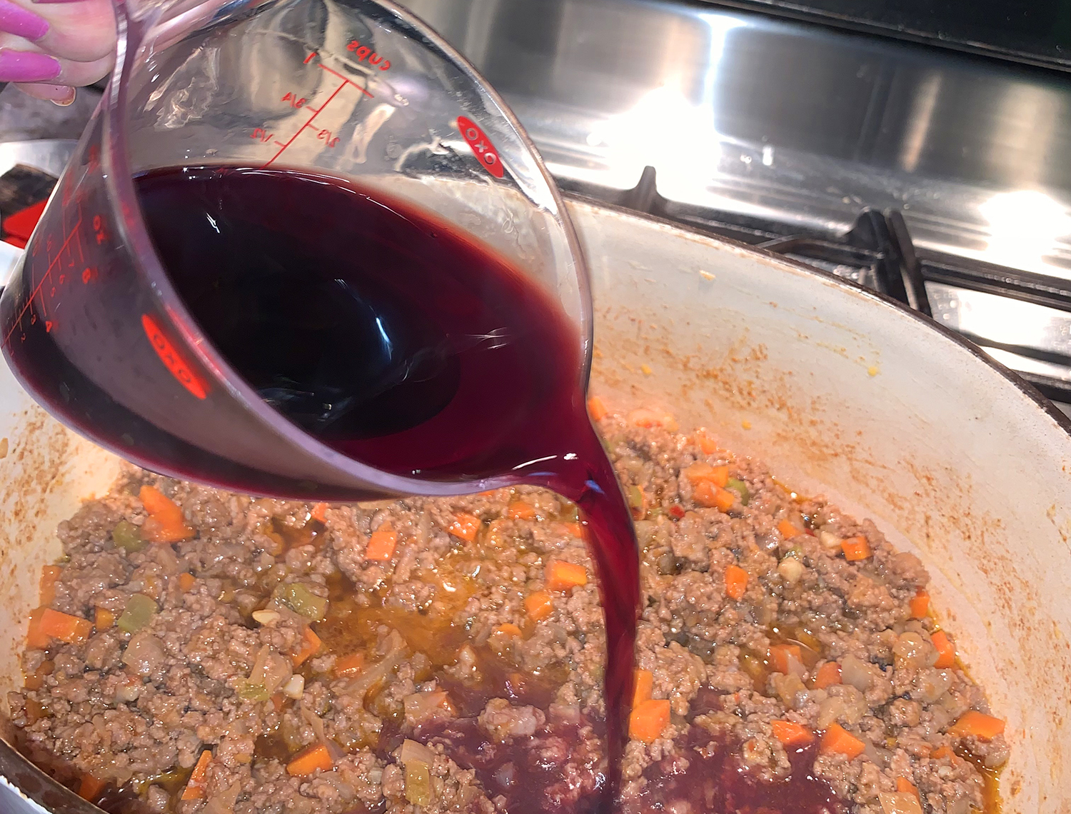 - In a large nonstick skillet, brown the ground meat until there is no more pink, making sure to break up any large chunks.