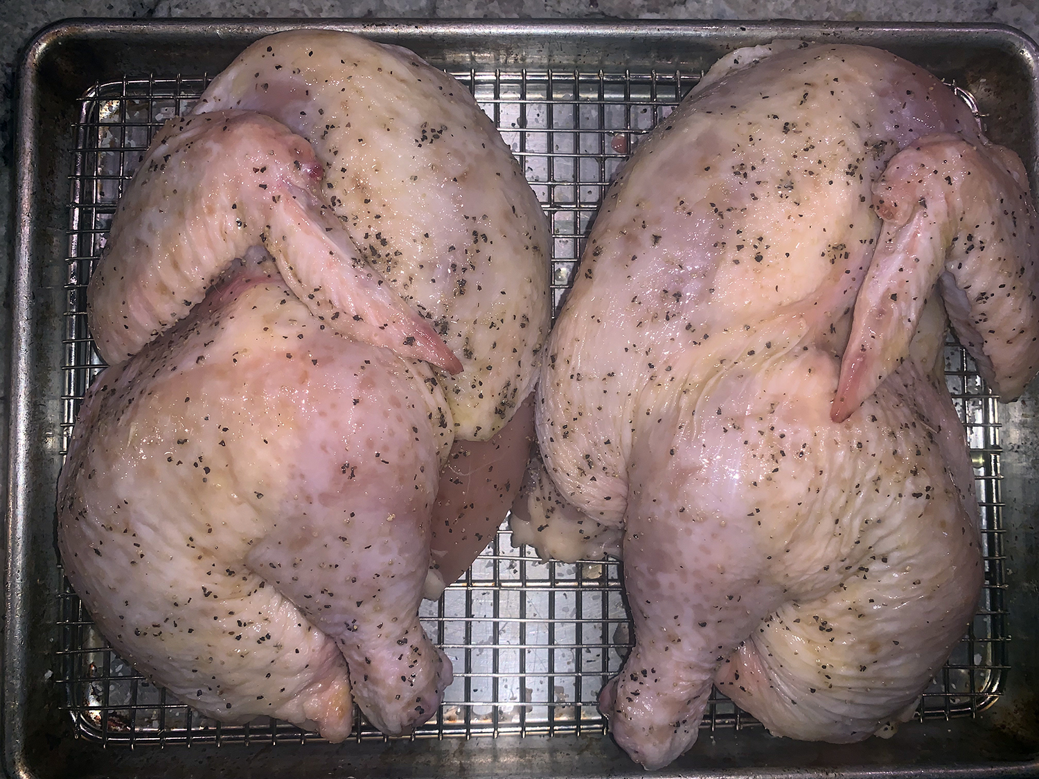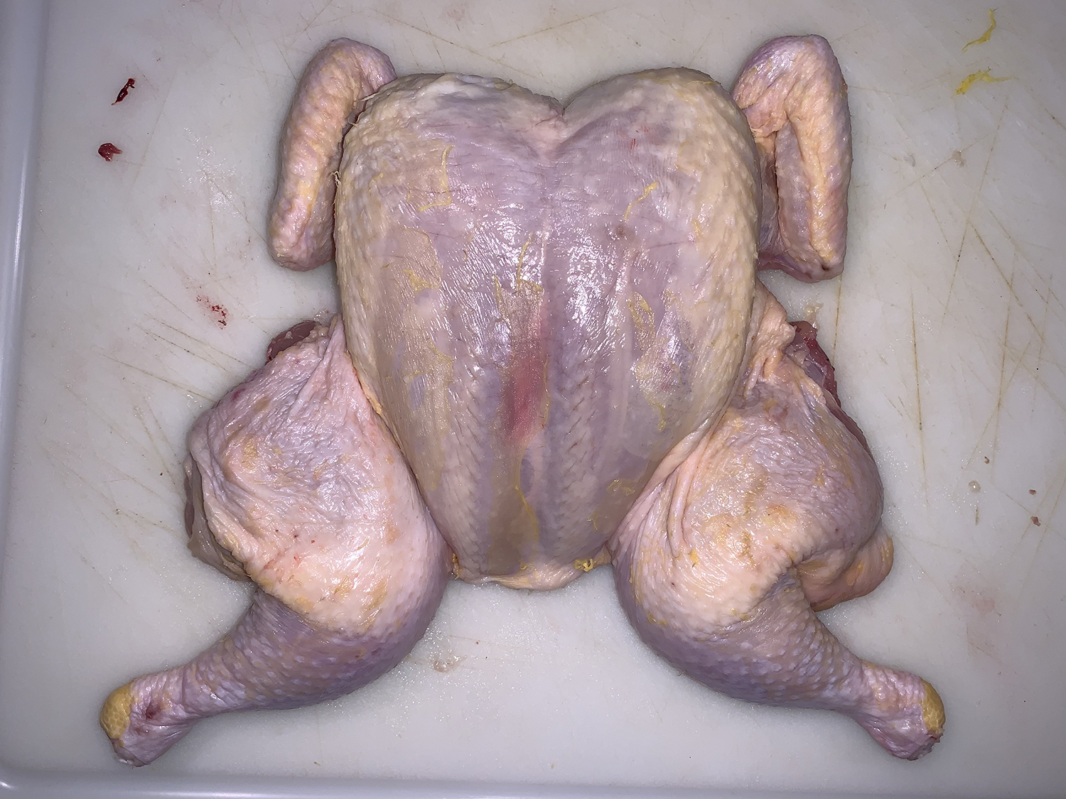 Now If you can find a whole chicken that is already split, the result is a chicken dinner with the same properties of spatchcocking (quick-cooking, lots of surface area to get charred, crispy skin) but which is more manageable than dealing with a whole bird. If you can’t score one, buy a whole chicken, butterfly it, then split it yourself by slicing directly between the two breasts.