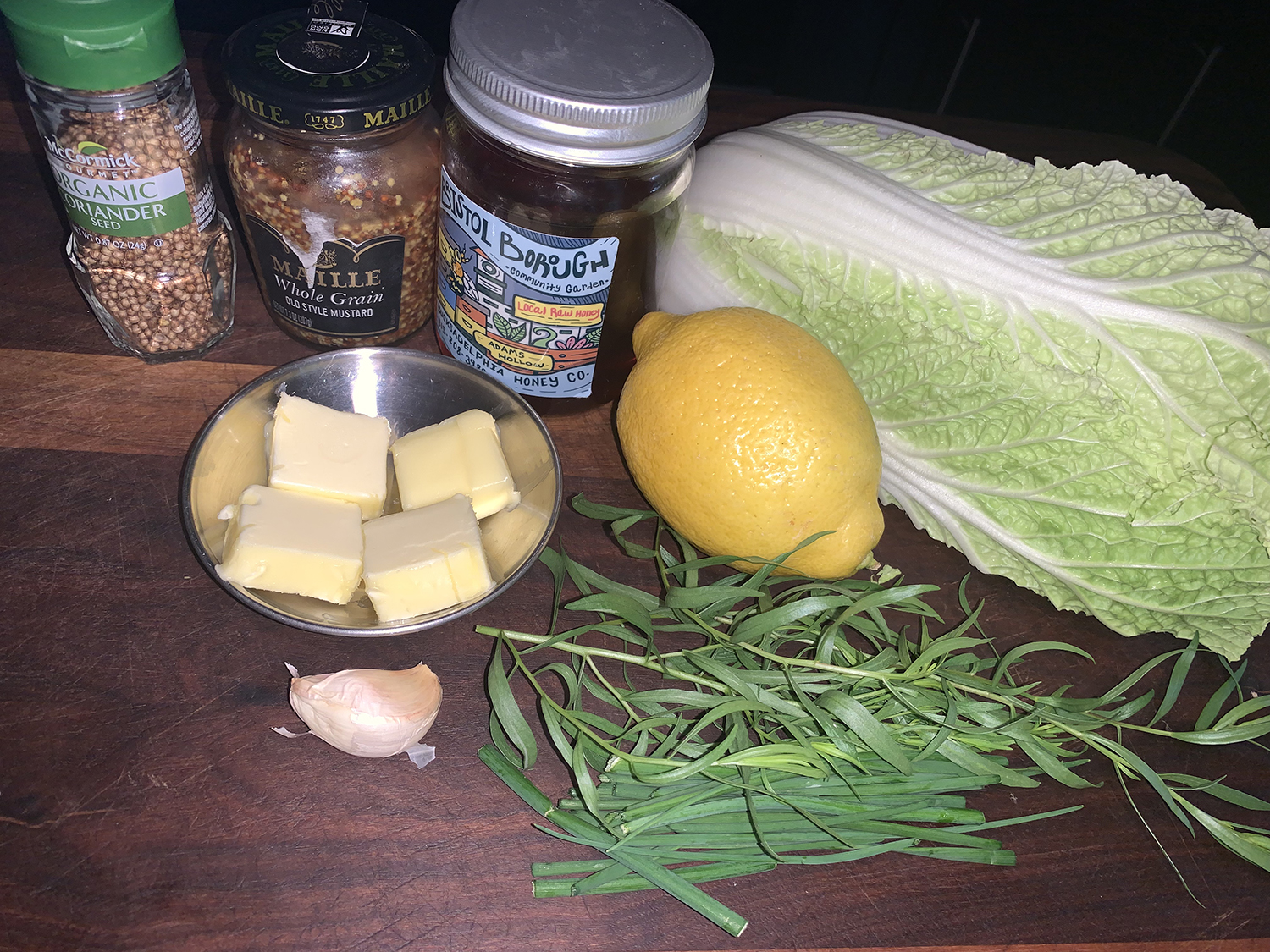 We had every ingredient on hand except for the hazelnuts (which is omitted in the list below) and decided to make it anyway, forgoing any nuts altogether. Since the half-head was just shy of 2 pounds, we kept all of the other staples at full value. As far as the herbs, we used a combination of chives and tarragon freshly picked from the garden.