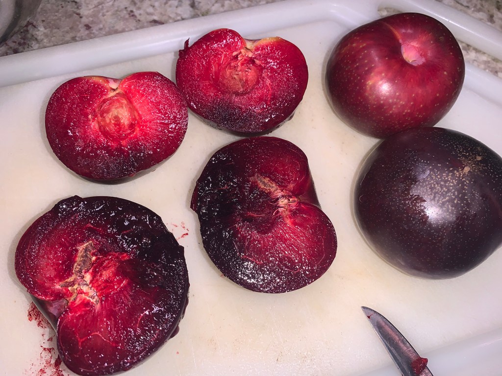 Absolutely delicious, this pork chop dinner was both slightly sweet and slightly spicy, with neither profile overwhelming the other. The Hubs is typically not fond of stone fruit, so when I mentioned that I’d like to make this recipe from Bon Appétit, he hesitantly got on board. After the first bite, he, and I, were amazed how much we plum loved it!