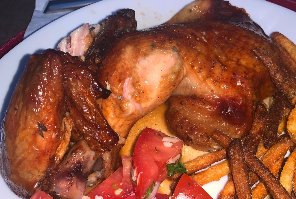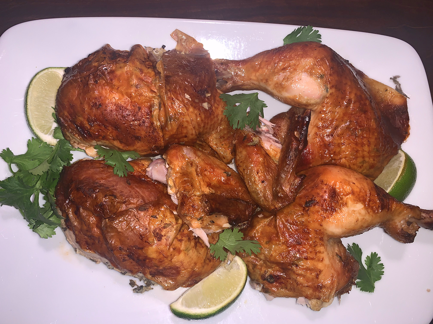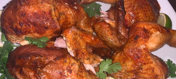 Cooks Illustrated tells us “In Peru, maestros polleros, or poultry masters, make the wildly popular chickens known as Pollo a la Brasa by grill-roasting chickens on rotisseries that spin lazily over crackling wood fires to produce meat that’s encased in tawny, paper-thin skin and dripping with juices.”